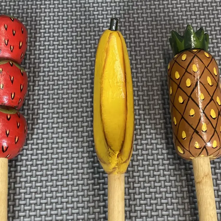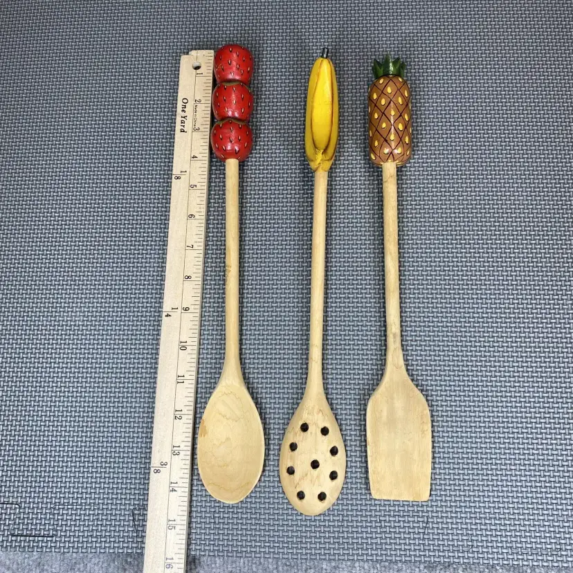 Preowned, some wear and chips from use, see photos for details and measurements. Includes a stack of strawberries, a banana, and a pineapple fruit handles.