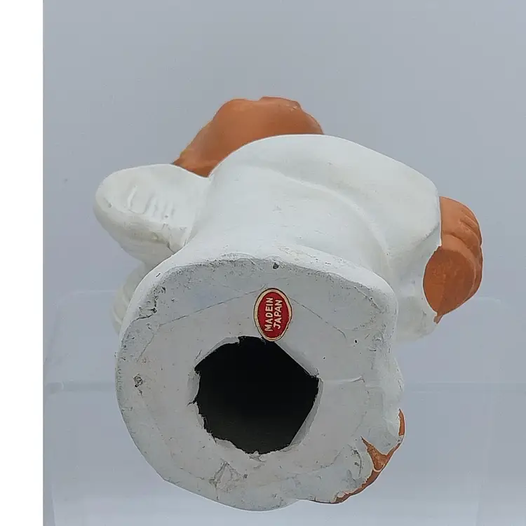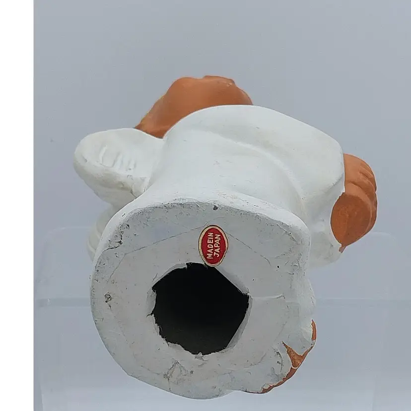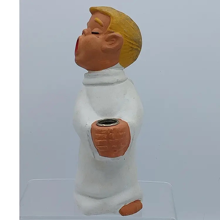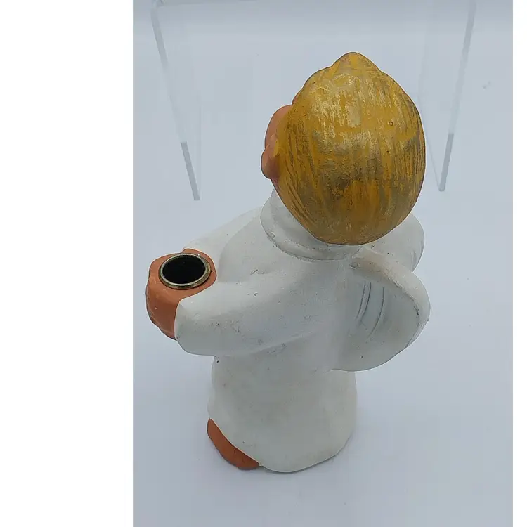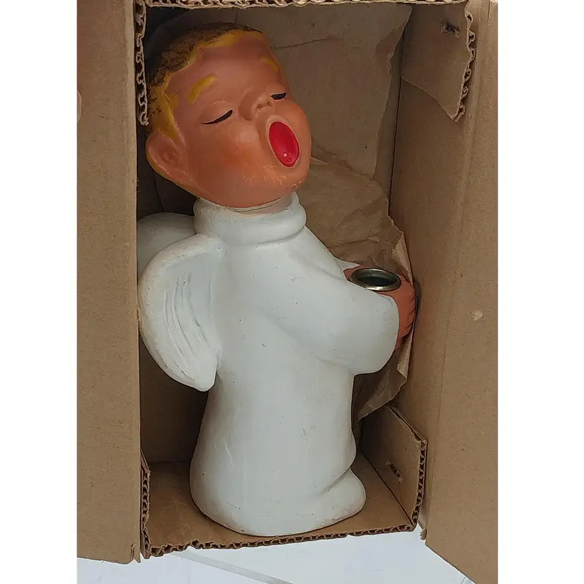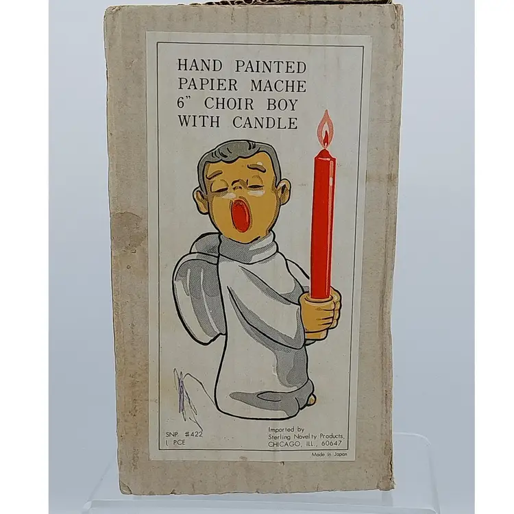So cute!! IN BOX!! Measures 6.0" high. I DO have the small red taper candle that came with it!! It had fallen out of the box and I couldn't find it when I took pics...but found it in the bin it was in. :D In very good condition!! Just some paint ware from the years. Can be retouched if you wish, or left as is. Made by Sterling Novelty Products.