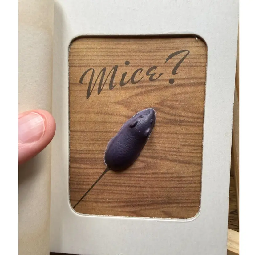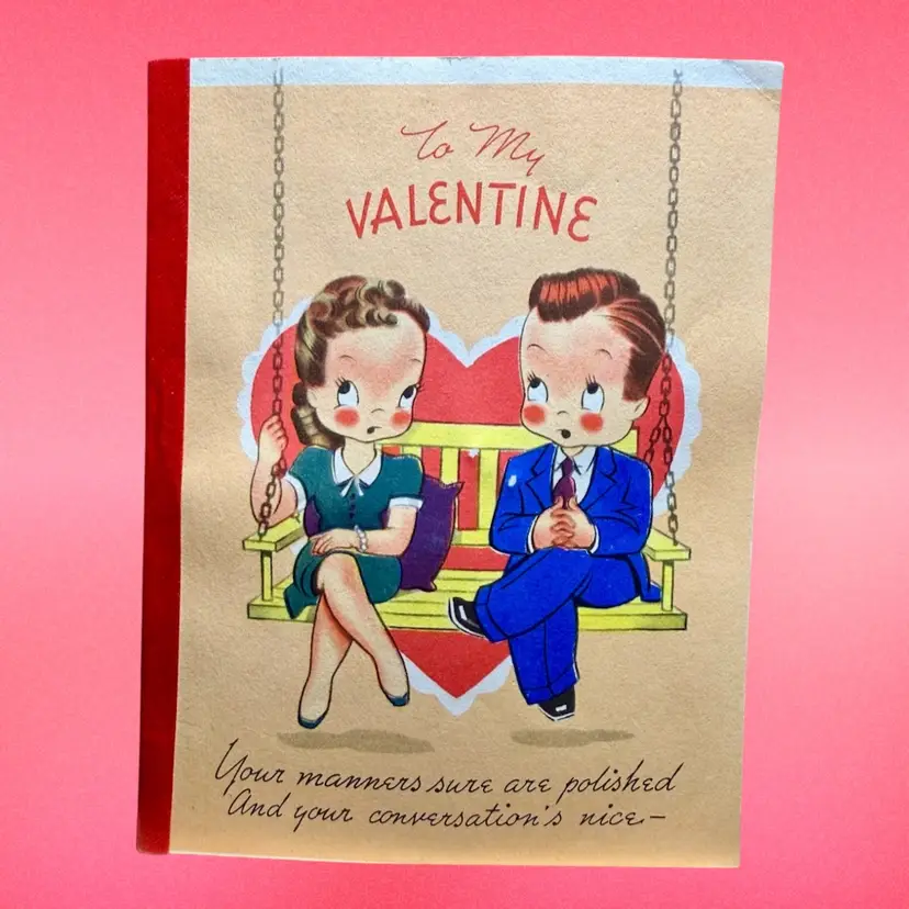 4.25”x5.5”. Vintage valentine greeting card, signed on the backside. Has two pages - last page features a 3D plastic mouse glued to the page. Has some minor wear due to age, mainly just dents or winkles in the paper.