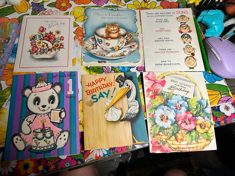 For sale! Group of Cards Happy Birthday Stork Lot Some signed. Sold as is.