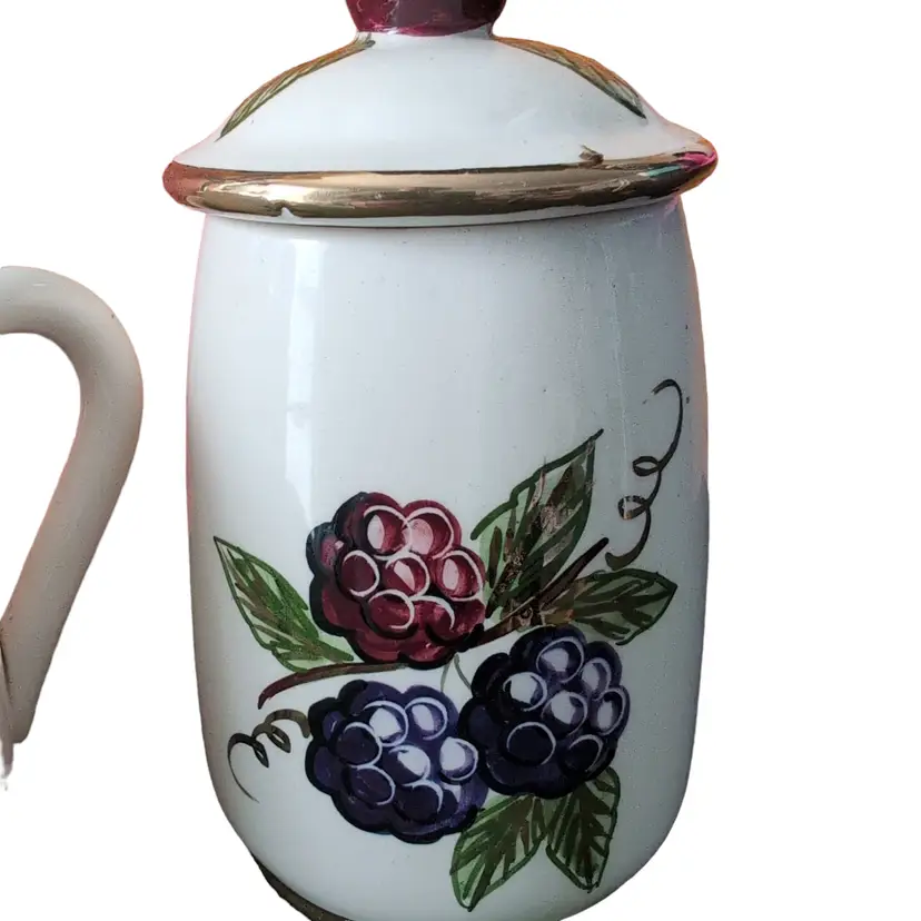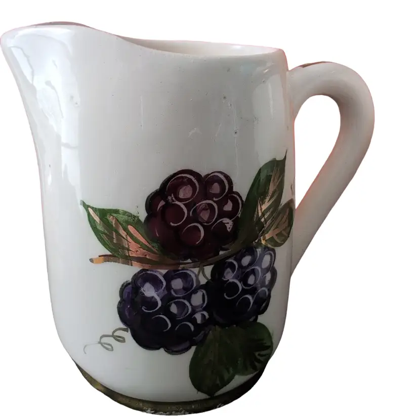 Charming creamer and sugar bowl duo featuring a hand-painted berry motif. Perfect for adding a touch of vintage elegance to your tea time. Some scuff marks on bottom