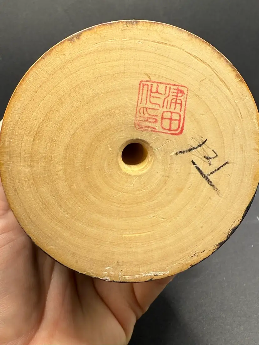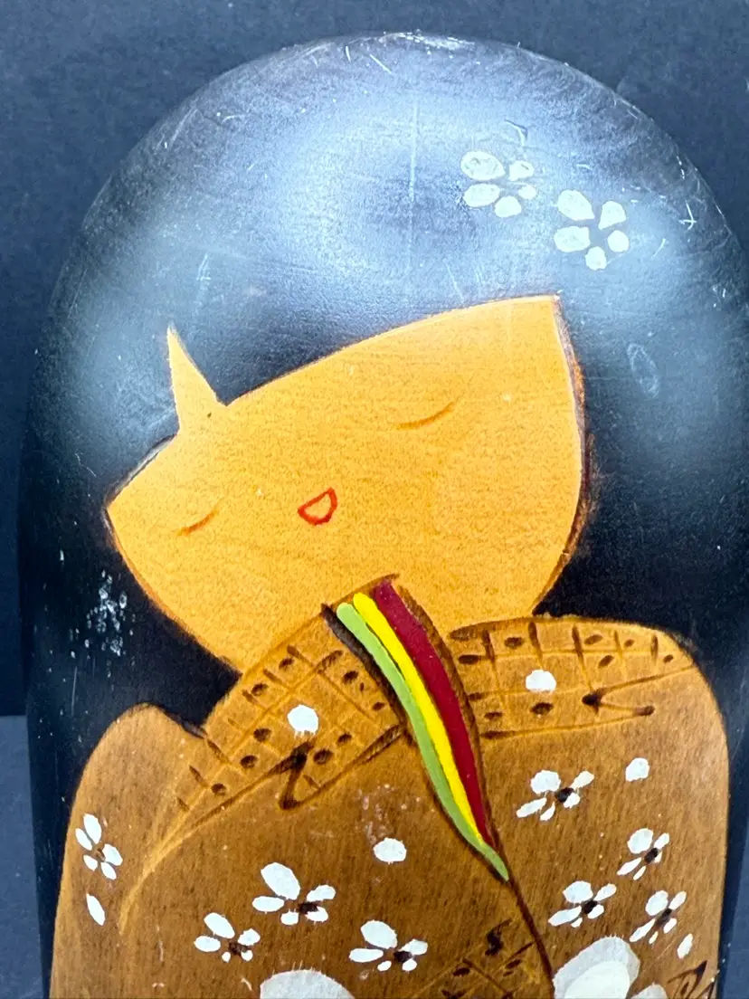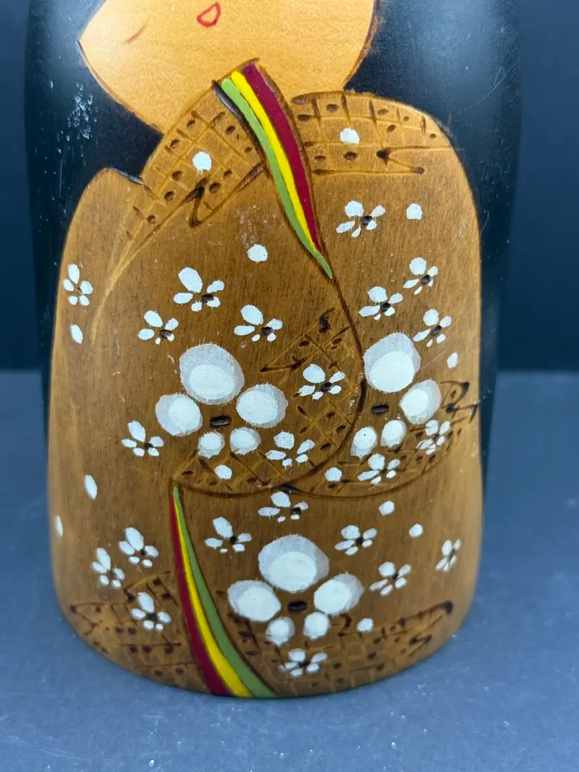 Beautifully hand painted this is a solid Kokeshi doll with sweet face. She stands at about 6 tall and is signed.