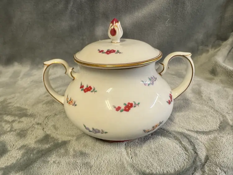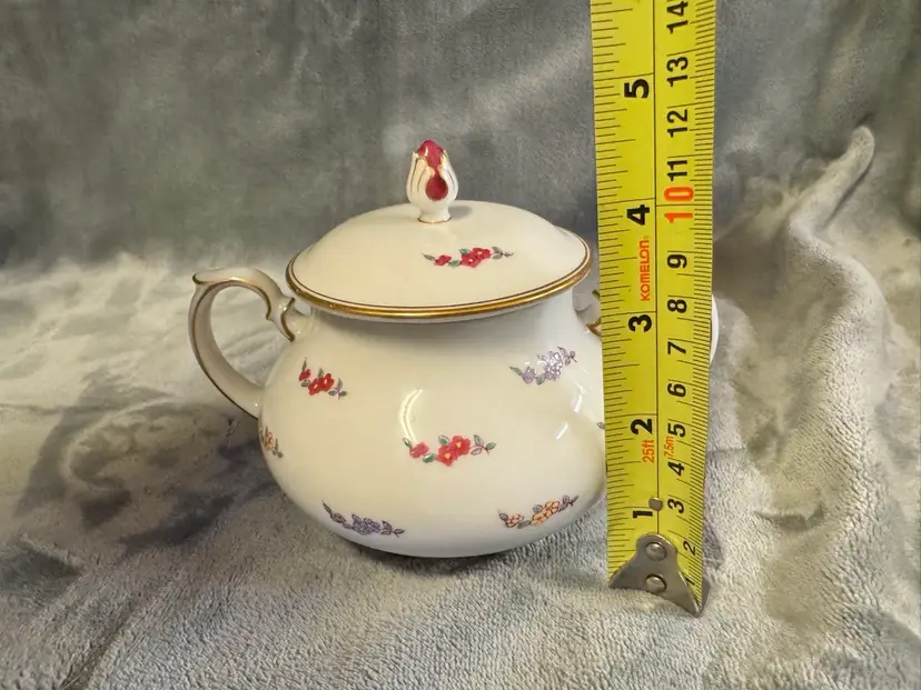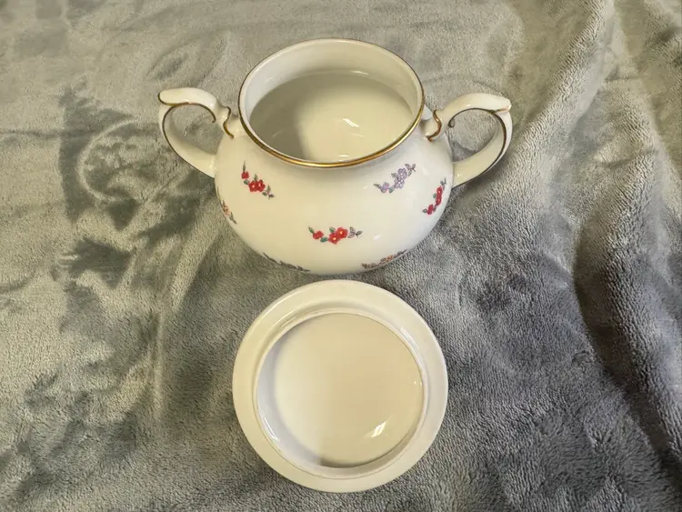 The set includes a creamer and sugar bowl, both featuring convenient handles and a lid for the sugar bowl to keep your sugar looking fresh. With a 4-inch height and a 3.5-inch diameter, these pieces are perfect for everyday use or special gatherings. Hand wash only care ensures the preservation of their unique hand-painted finish and the beauty of the multicolor design. Excellent condition. No chips, cracks, scratches or crazing. Gold gilt is in pristine condition with no signs of wear.