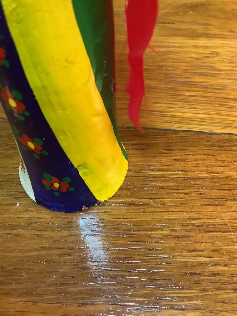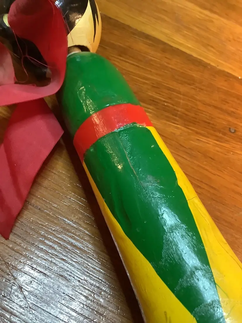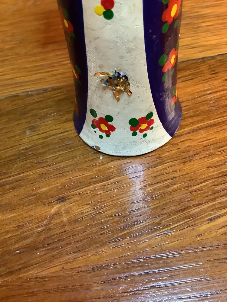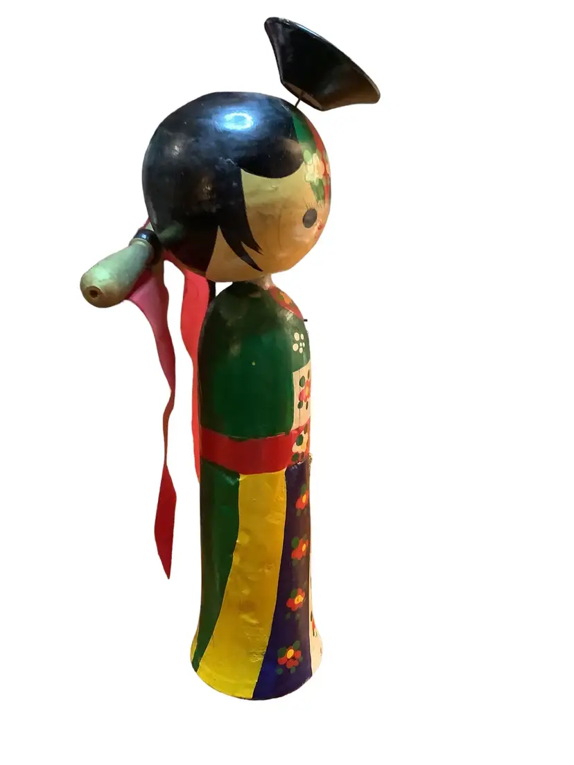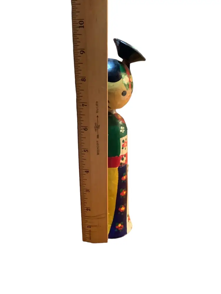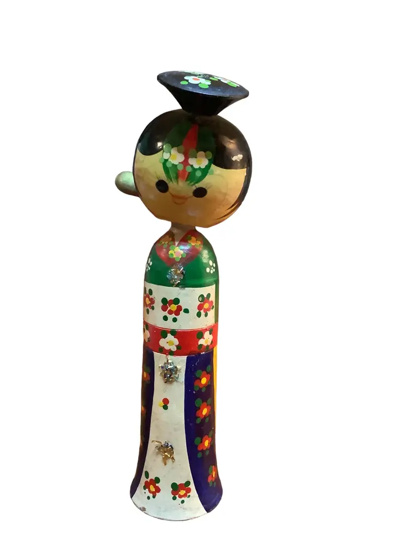 Good overall condition. She has minor chips on the bottom. Her hair pin bows need a little love. Please see pictures for details.