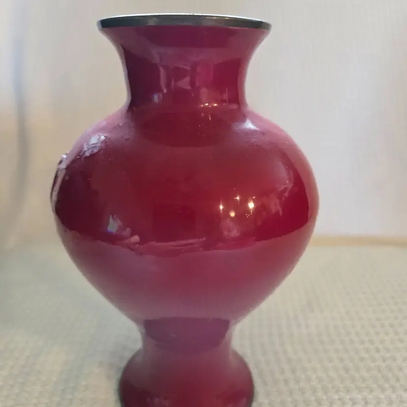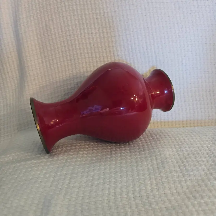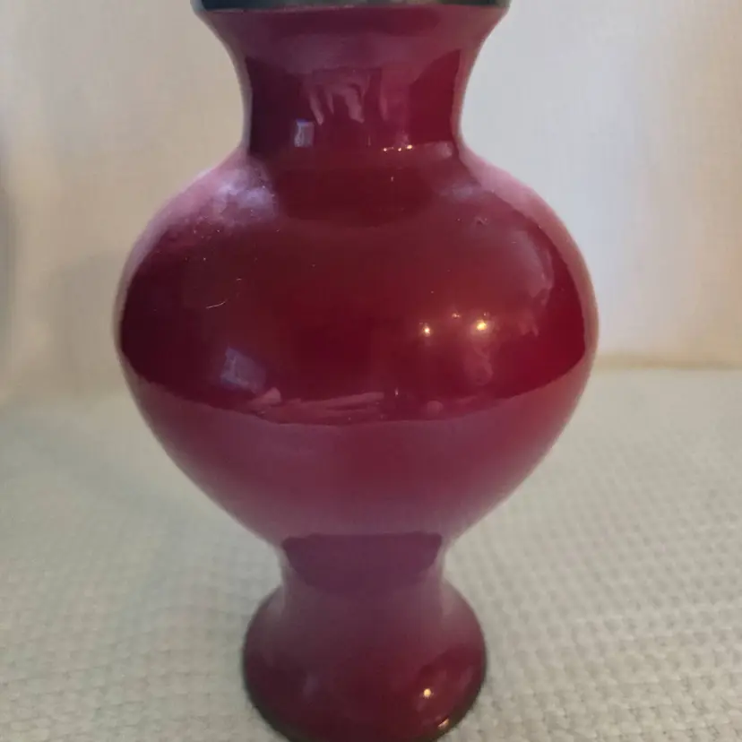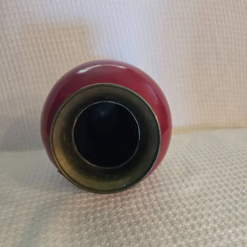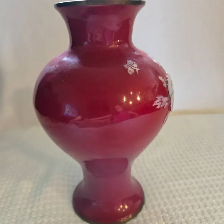 This is a vintage lacquer over brass vase with a mother of pearl floral designs. Made in Korea in the mid 20th century. Measures 7" tall and 4" at widest part. The opening is 2". In excellent condition. It has part of the original sticker on the bottom. A simple but elegant piece.