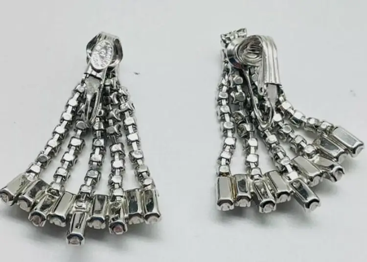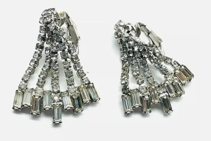 Add some sparkle to your outfit with these vintage rhinestone dangle clip-on earrings. Perfect for a night out or special occasion.