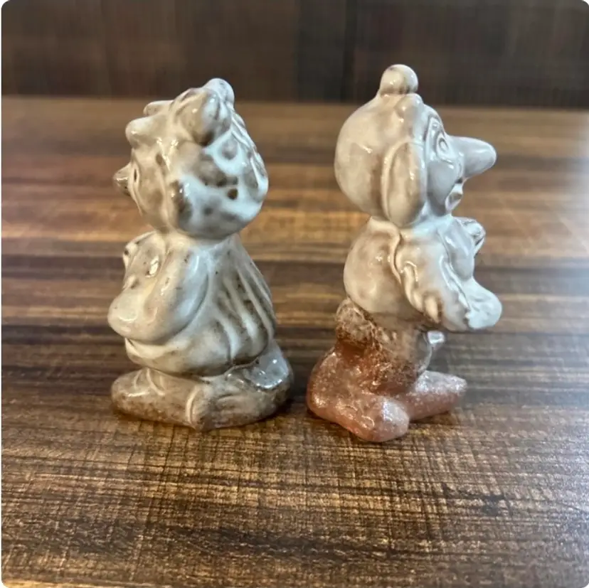 Both figures are crafted in ceramic with a soft matte glaze finish, showing Starck’s signature style. They feature whimsical details—playful expressions, textured hair, and traditional forms—making them highly collectible pieces of Danish mid-century design.