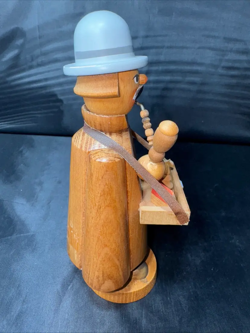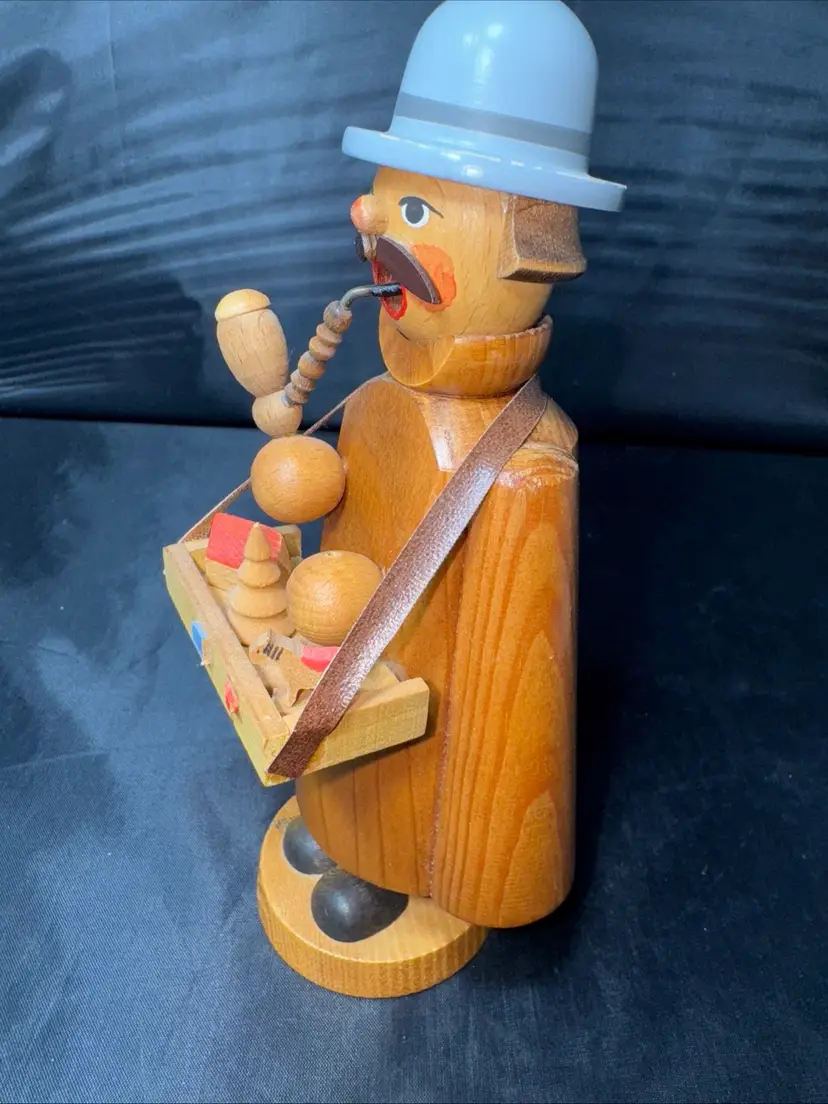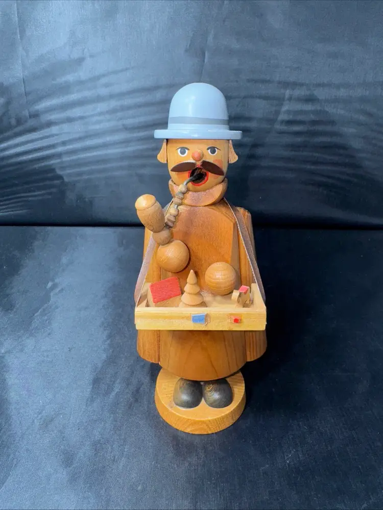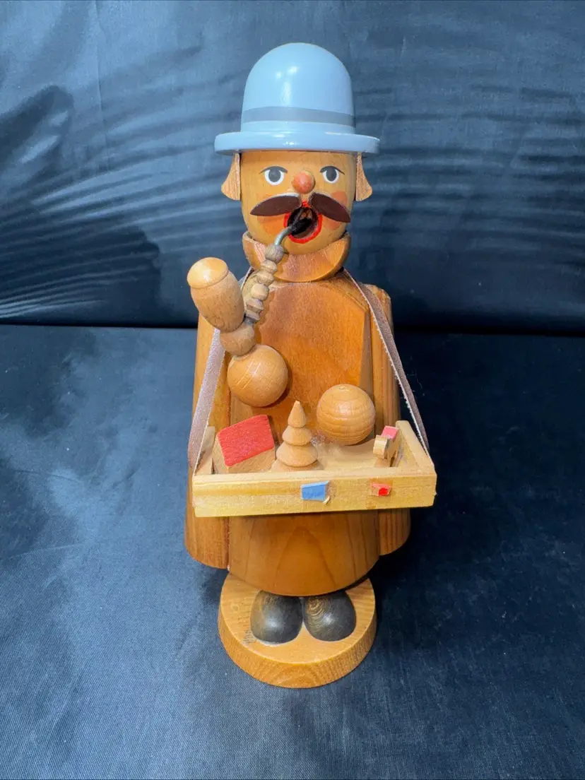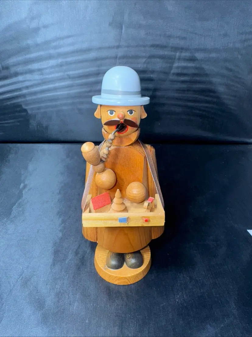 Craftsmanship: They are typically hand-carved from wood and are a well-known example of traditional German folk art, particularly from workshops in Seiffen. Vintage Kunert Erzgebirge Holzkunst German Wood Incense Smoker, Toy Maker.. Measurements are approximate: 6.5” tall, 3” front to back and 3.25” left to right.