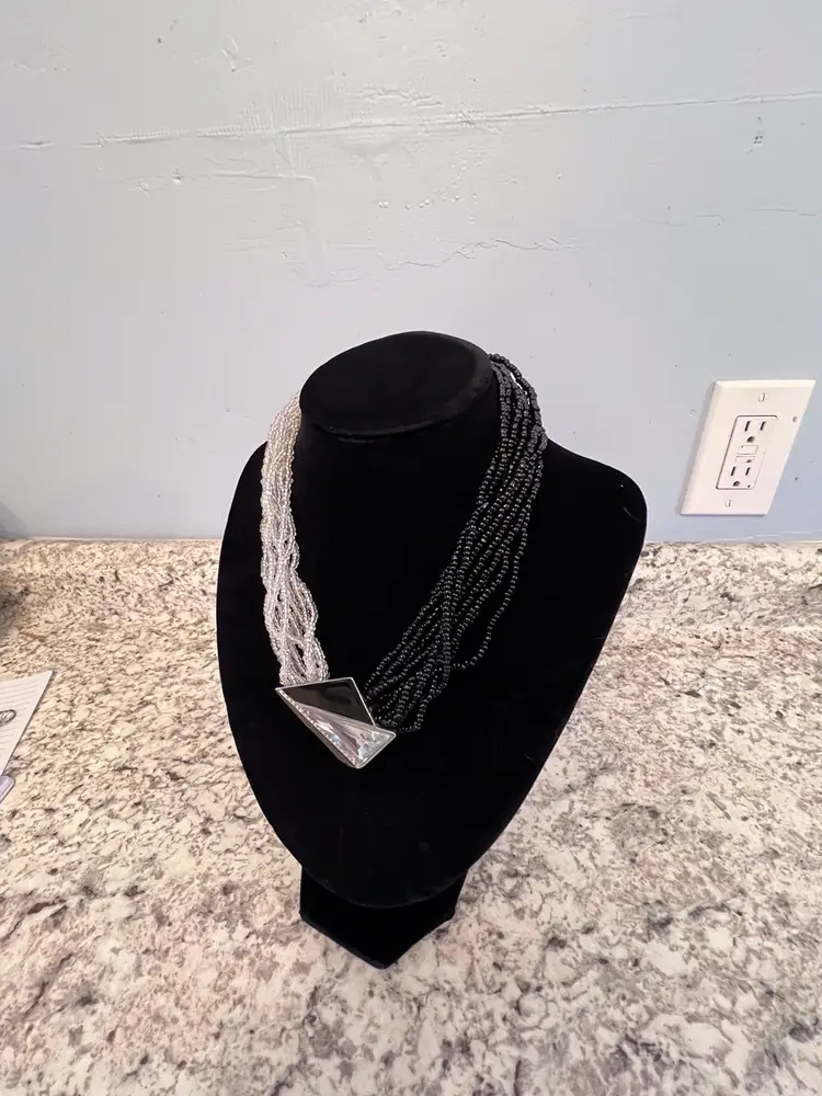 Vintage Art Deco Necklace designed and signed by Kunio Matsumoto for Trifari. Necklace is 17”Necklace is multi-strand black and