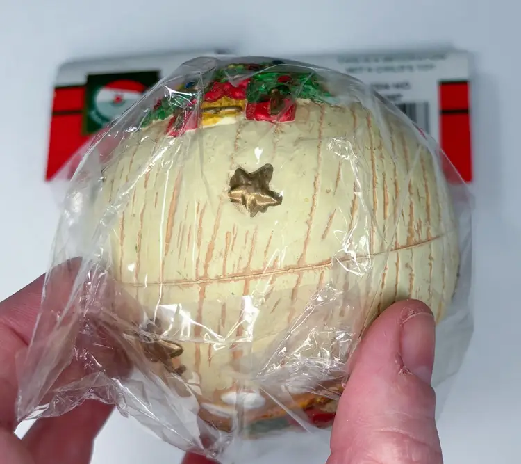 Condition: Old stock still in package but there is something rattling inside the ornament. Exterior looks fine.