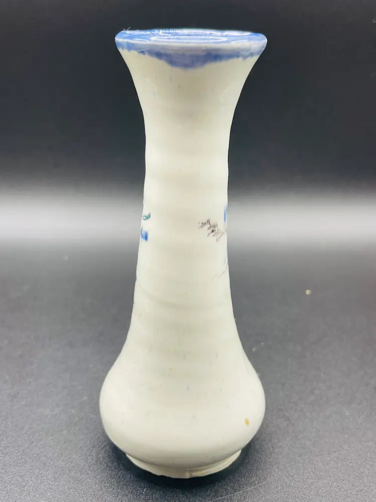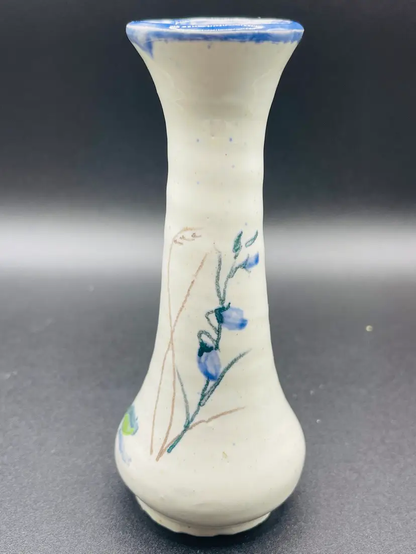 This stands approximately 5 and a half inches tall, there are no chips or cracks. It is signed and stamped by the studio on the bottom.