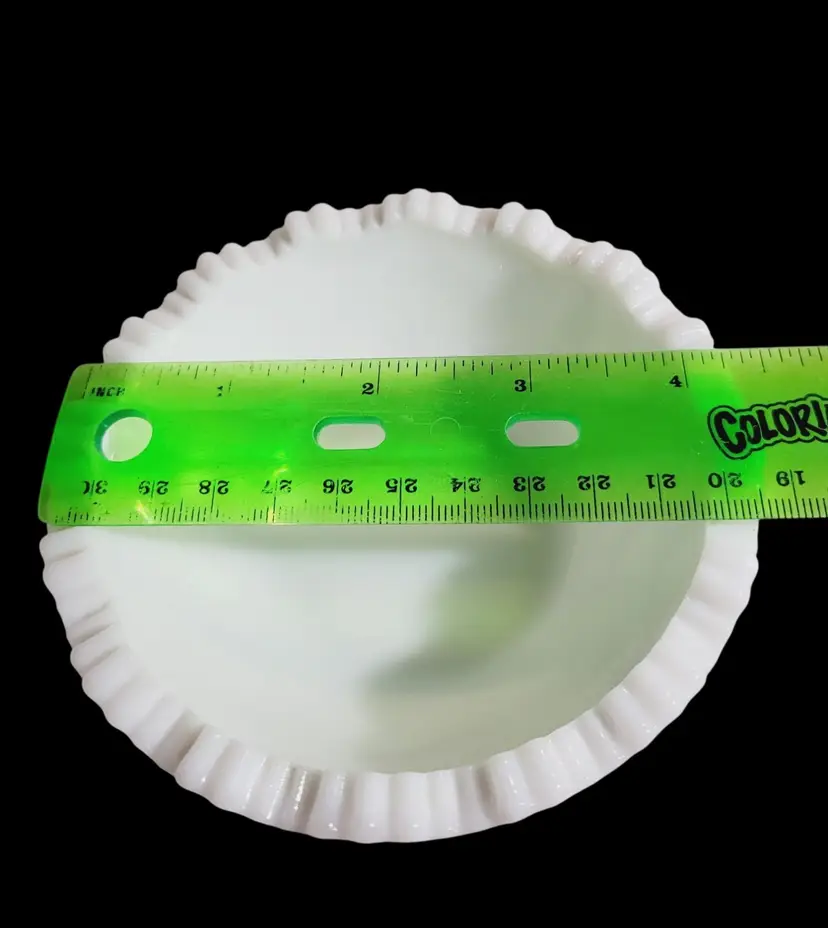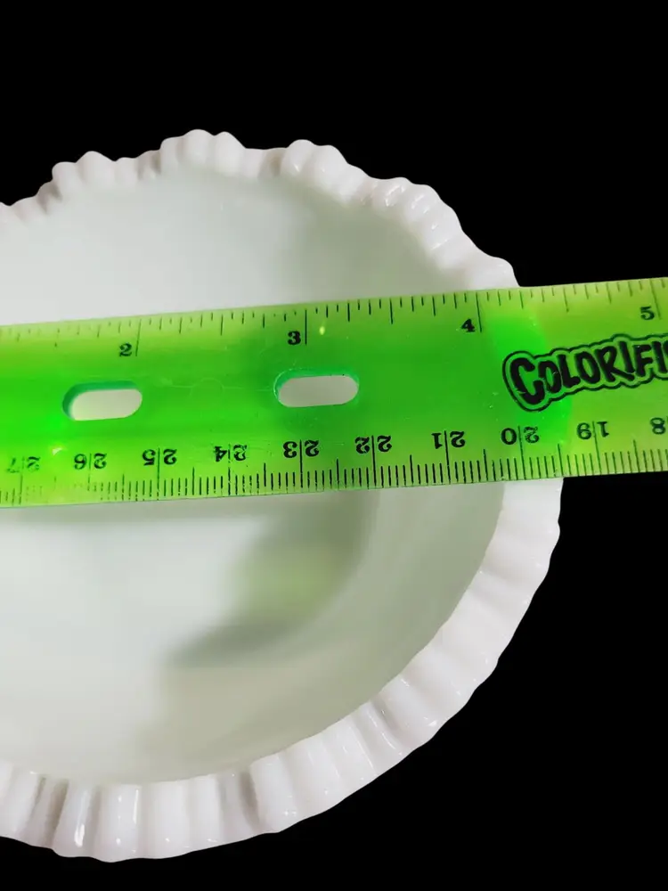 Diameter = 4 inches Depth = 1.75 inches Excellent condition, no chips or cracks