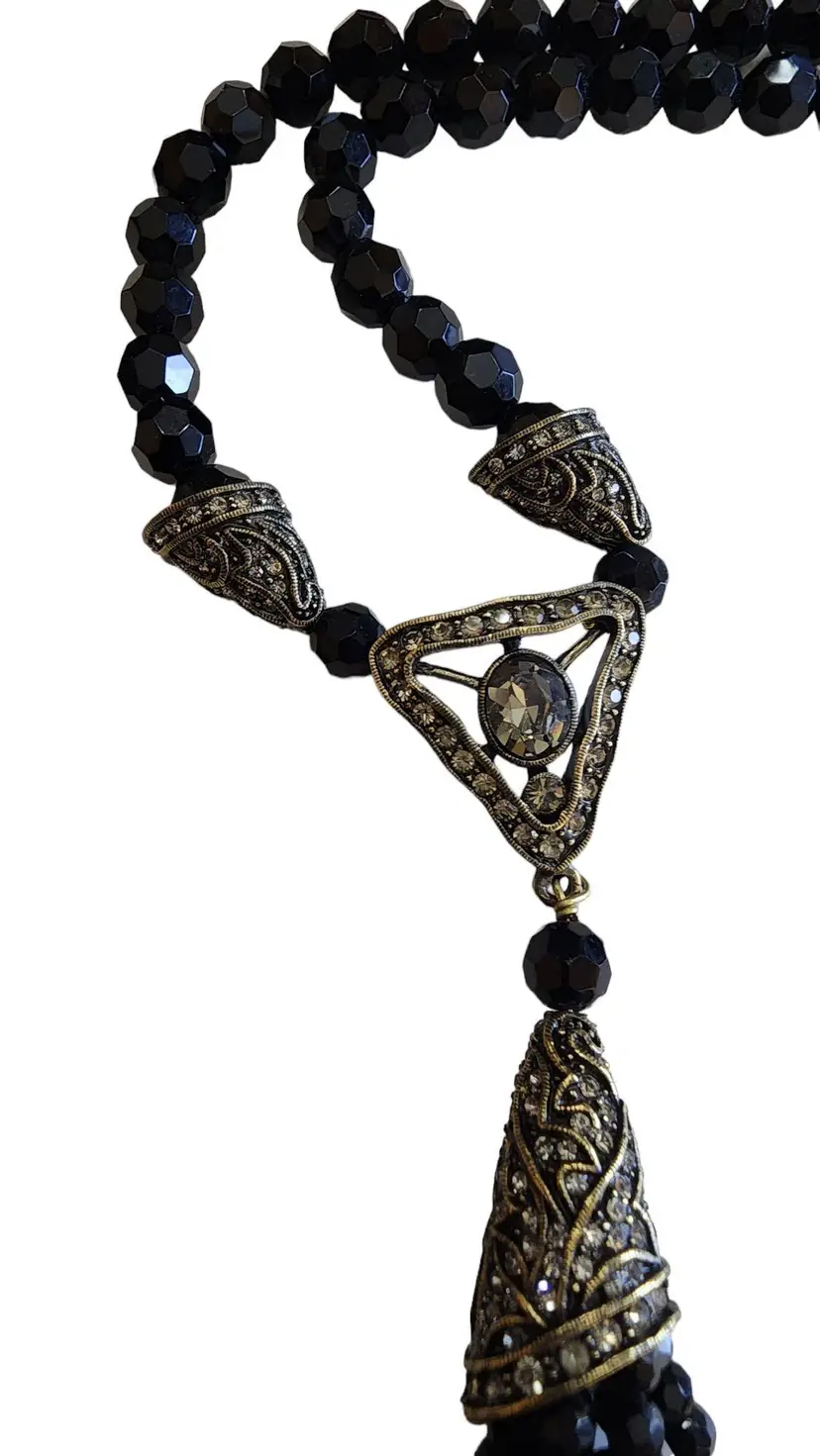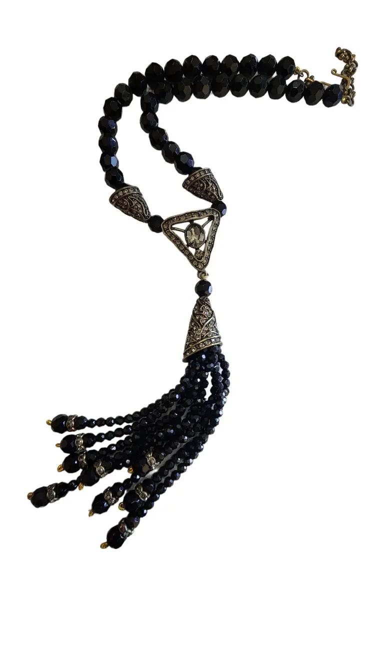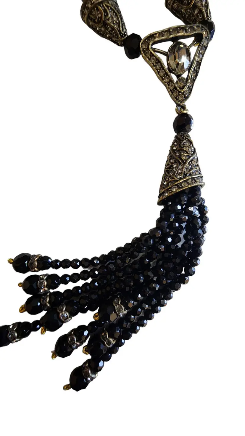 Vintage LA Vintage Signed Crystal Tassel Necklace (A1409)