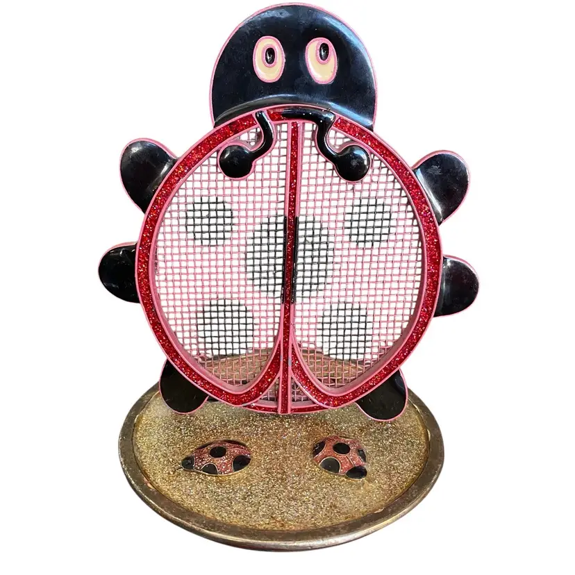 Vintage ladybug earring tree holder. Felt bottom. Metal 6in tall