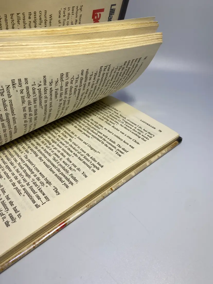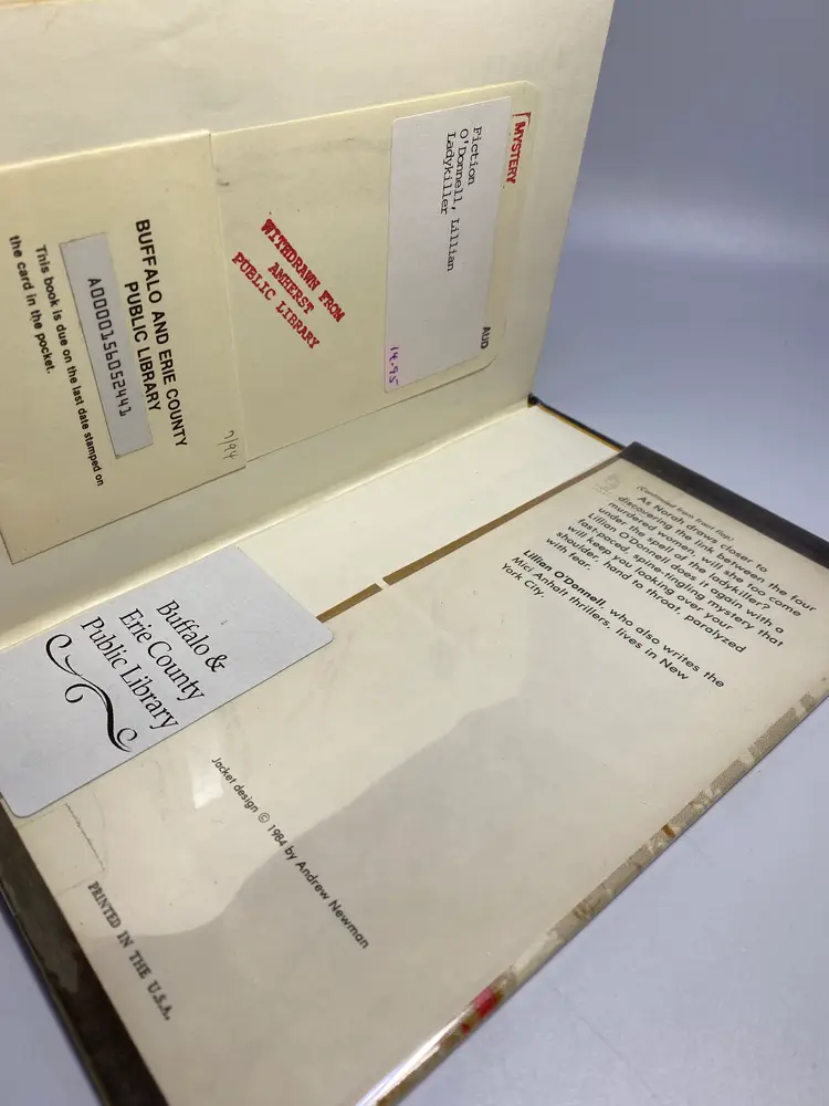 Cover has plastic cover from library so dustjacket is protected. No rips or creases in pages, pages still white. Has library pocket, stickers and info on back page and cover - see photo 6. First couple pages are wrinkled on bottom probably due to some sort of liquid - see last photo. Please look over and enlarge photos for overall condition.