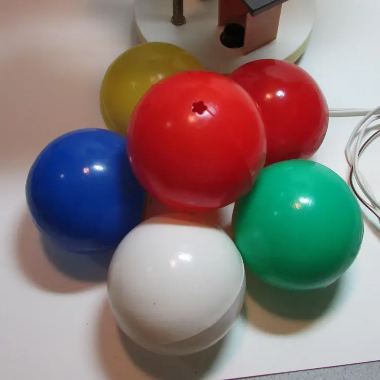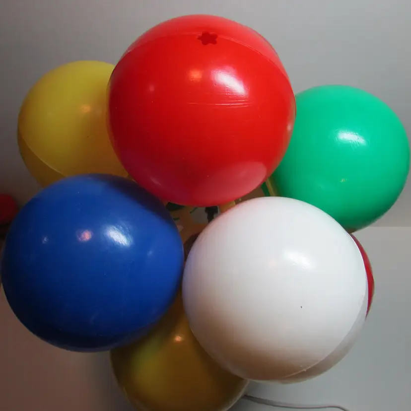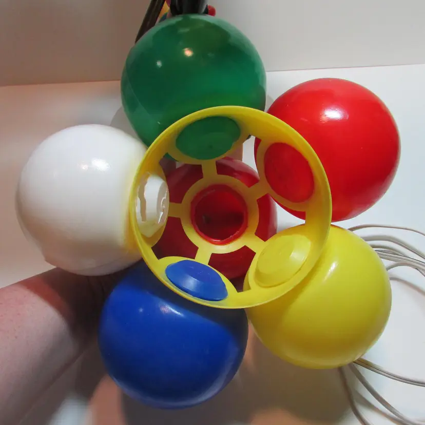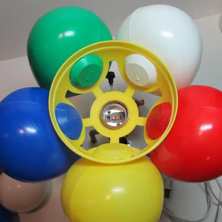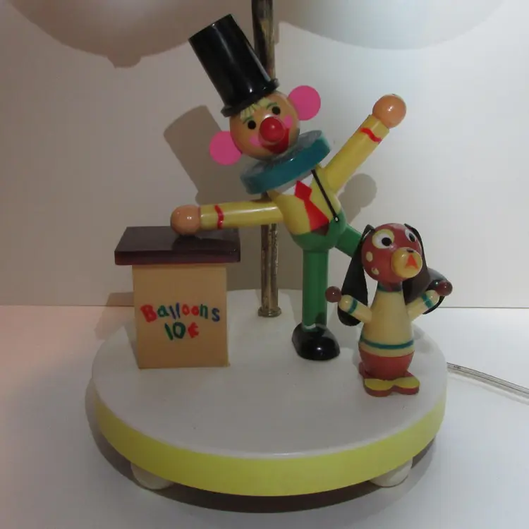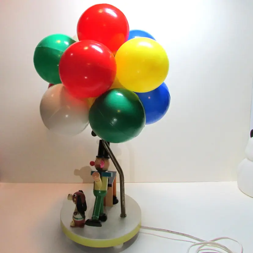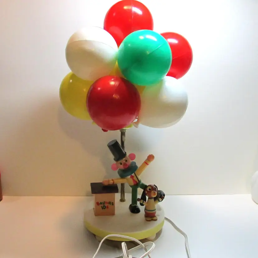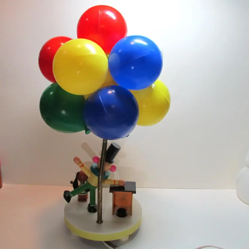 This adorable lamp has some wear, the strings are missing and one of the balloons is cracked inside the shade holder. Still a lovely piece to use and display. It is about 20" x 11" x 11". This is shipped from a smoke free home. Thanks for looking! locucr