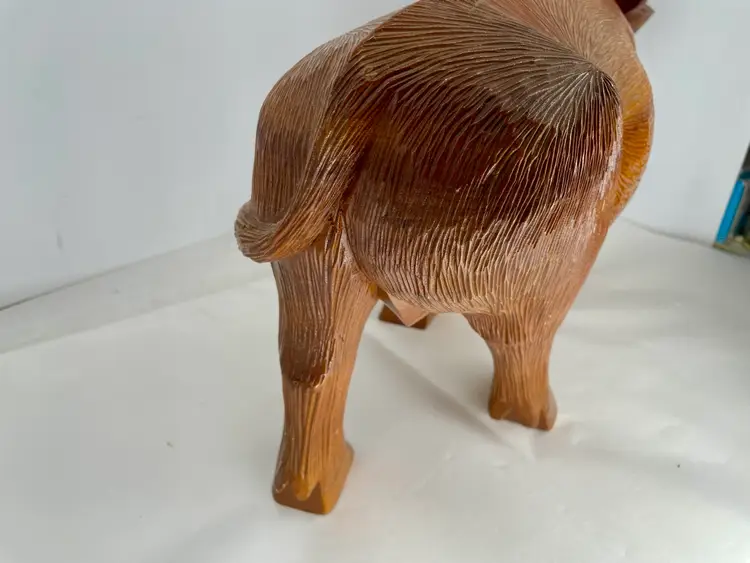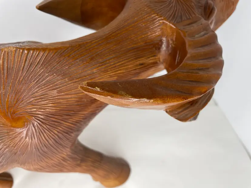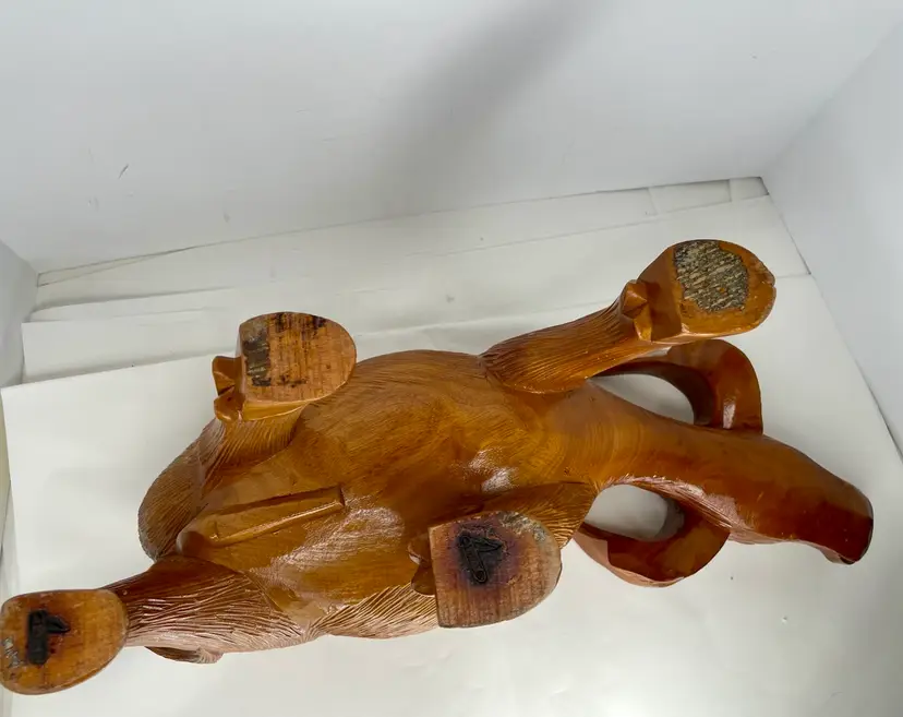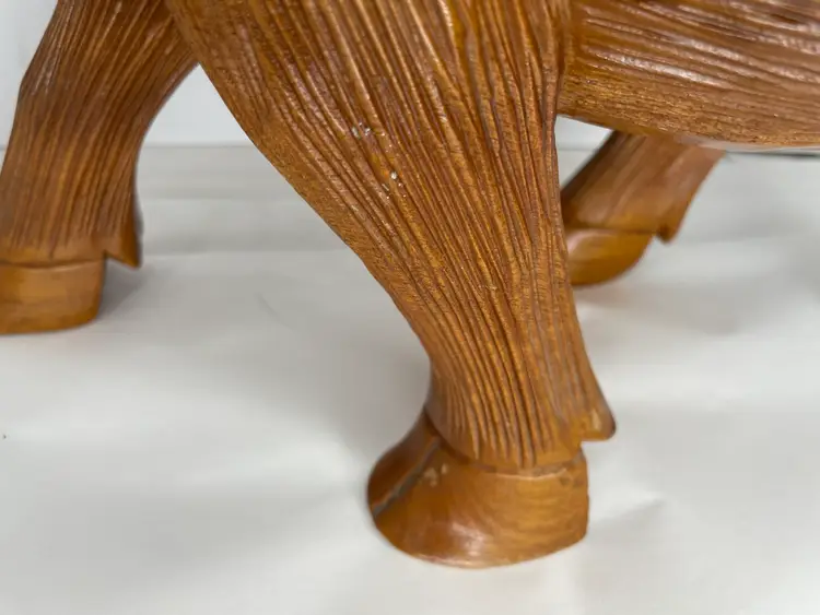 Some scuffing to wood. 2 hooves have a mark which looks like a knife with the initials DVS in the center. Please review pictures closely, and msg me with any questions. Check out my other listings for more unique vintage items. Thanks for looking!