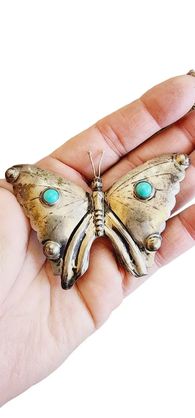 Vintage Large Alpaca or Metal Butterfly Brooch (A3149)