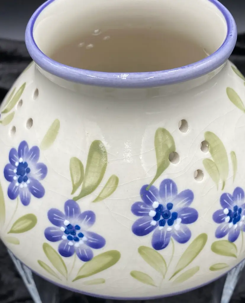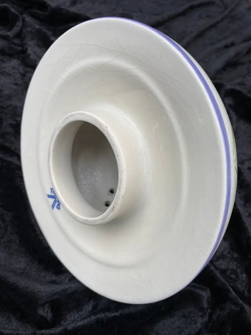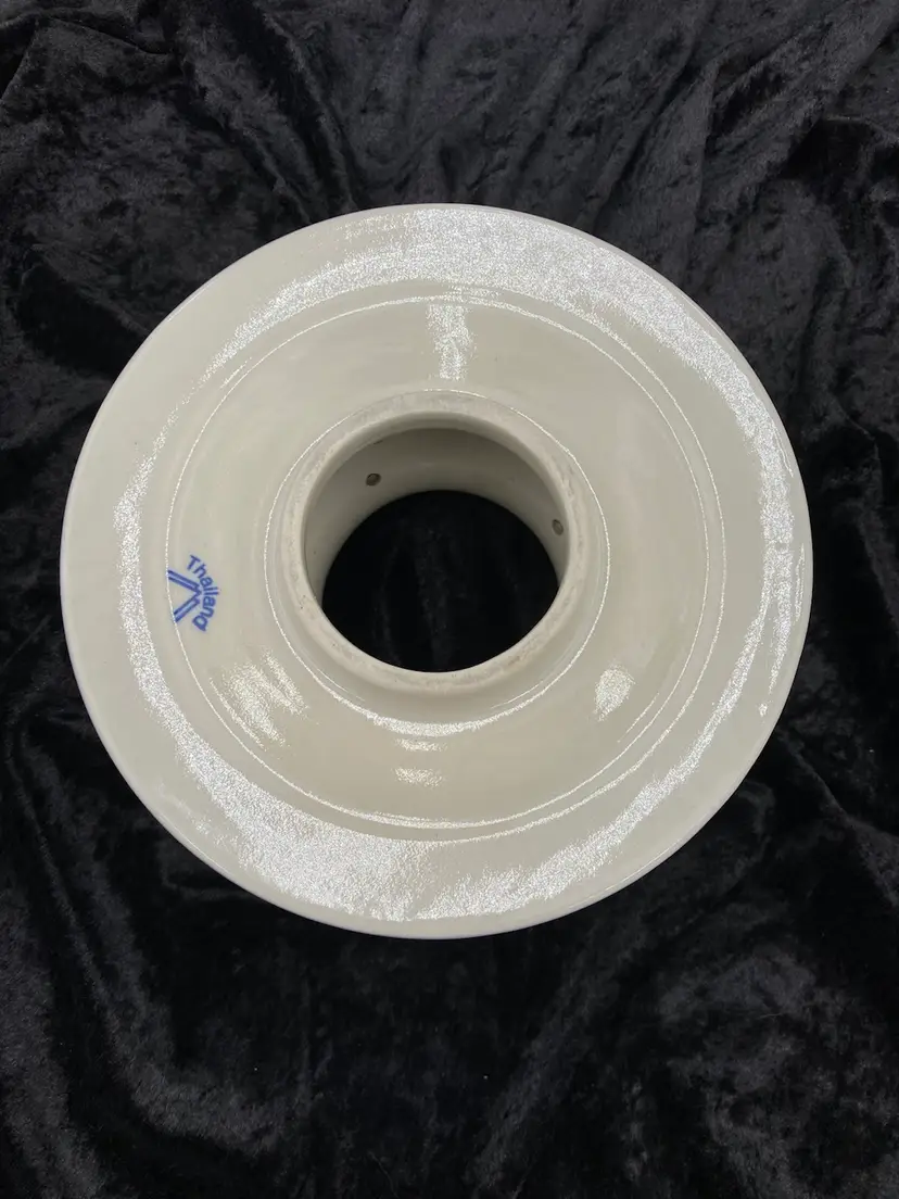 The ceramic large jar candle shade is in excellent used condition. There are no chips or cracks, although there is crazing on the underside of the shade and a little crazing on the body of the shade (please see the pictures). There is minimal scuffing on the unglazed part of the shade.