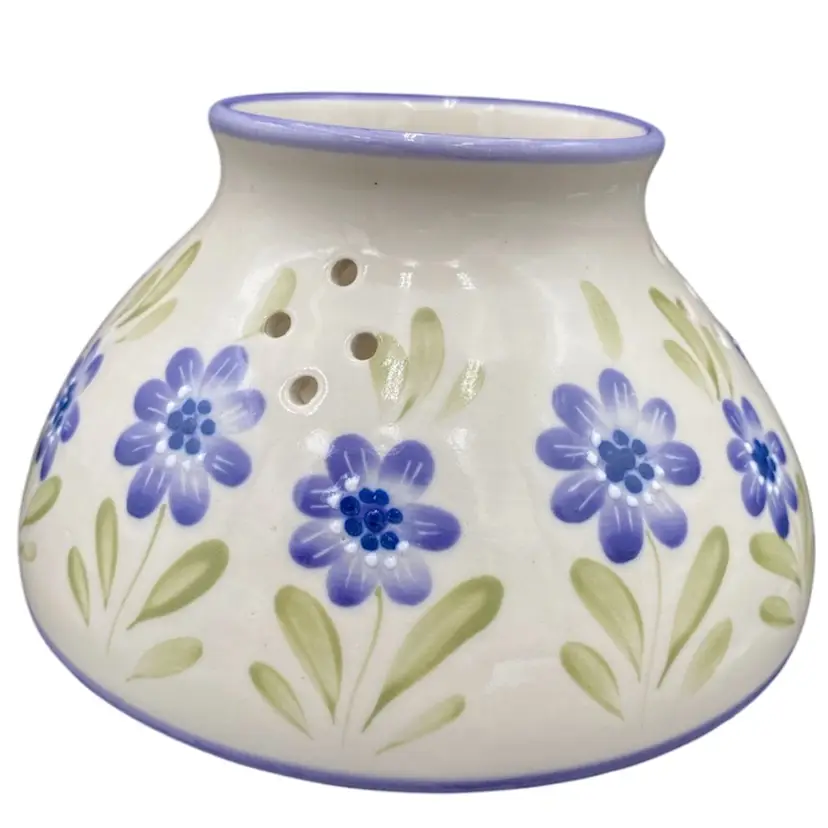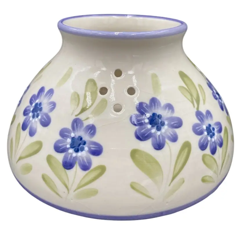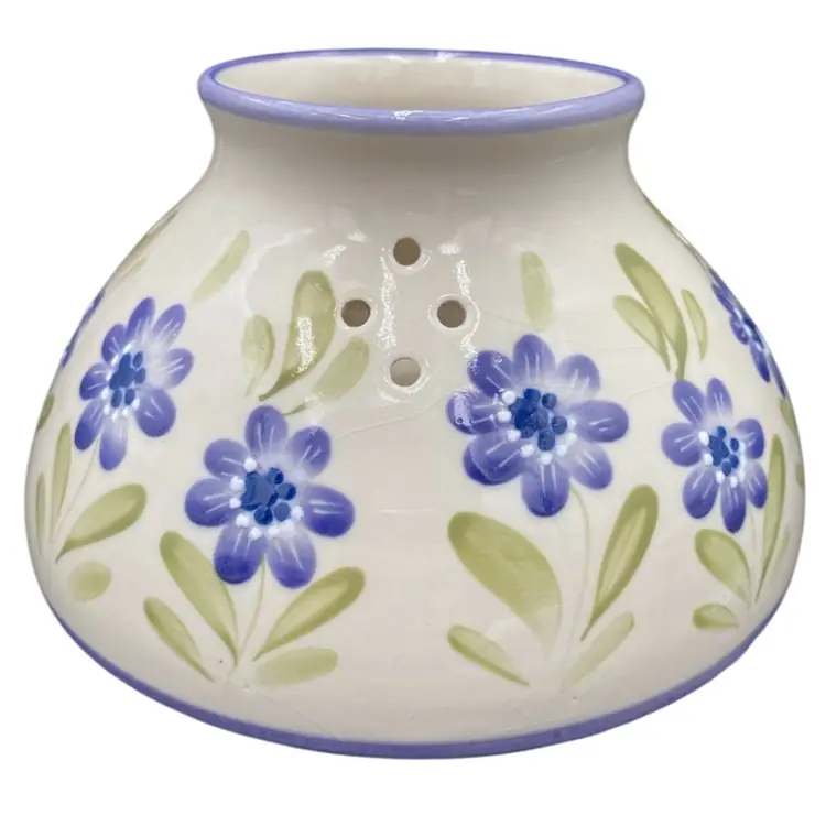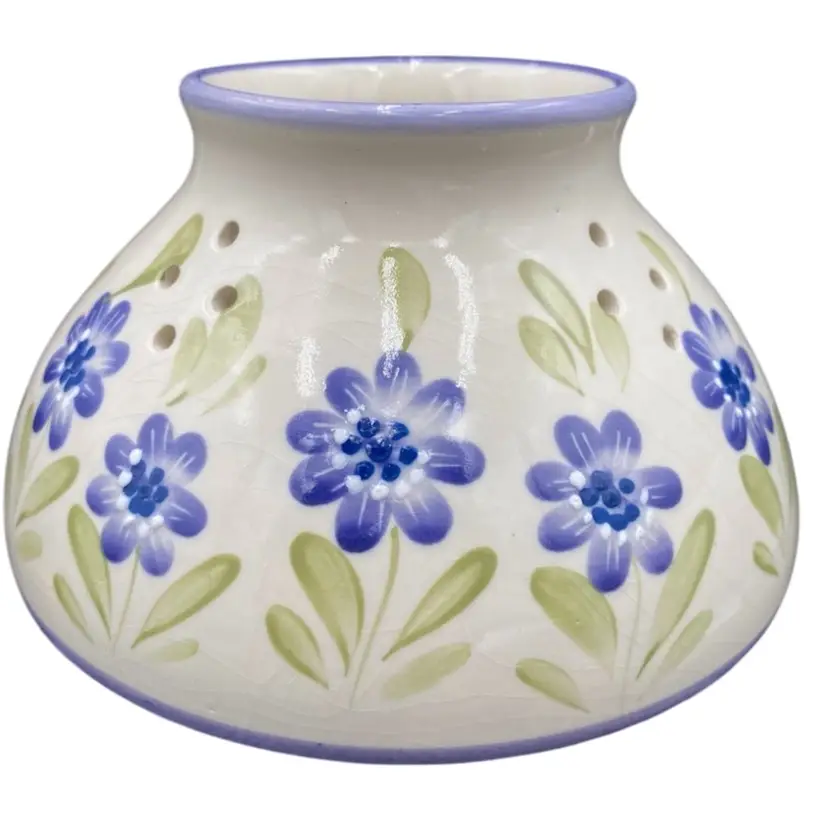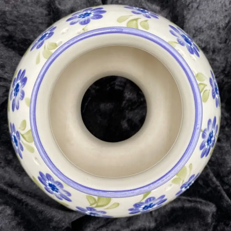 This lovely Candle Dome has an eye-catching design. It features lavender rings around the edges, light to deep purple flowers, white moriage dots for accents, and green leaves against a cream-colored background, giving it a unique and timeless look. This flower garden shade is perfect for holding large jar candles and will create a warm and inviting atmosphere in any space. It measures 3.75 inches in height and 6.4 inches in width, weighing 1 pound and 6.6 ounces. Clean with a damp cloth and enjoy the beauty it brings to your home.