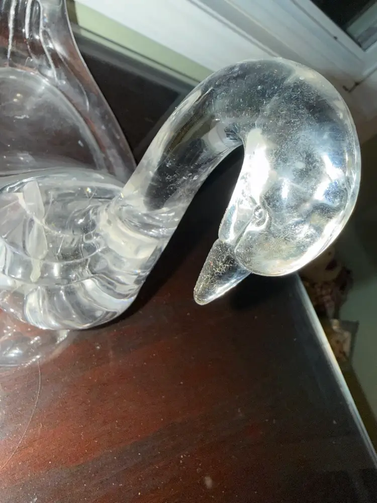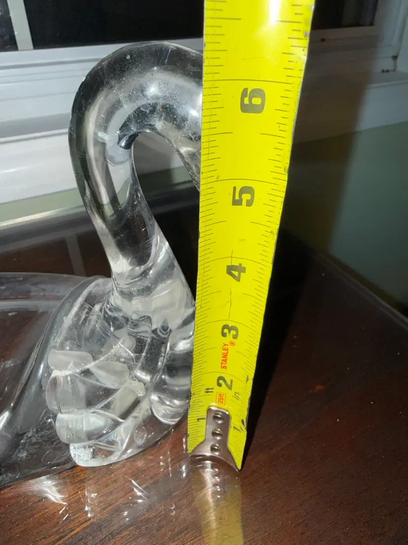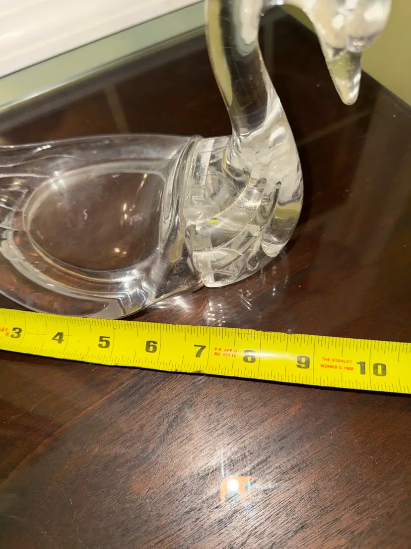 The vintage clear plastic Lucite swan soap dish/figurine is a whimsical and unique collectible piece that doubles as a trinket holder. This kitschy Mid-Century Modern figure features a swan design, adding a touch of charm to any space. Made of durable plastic, this handmade soap dish is a functional and stylish addition to any collection of swan-themed items or bird-themed decor. Its intricate details and vintage appeal make it a standout piece for any bird enthusiast or lover of retro design.
