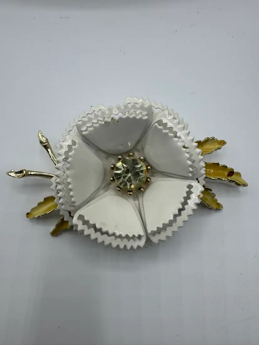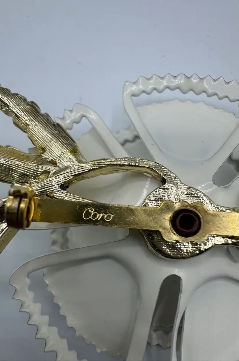Vintage Large Coro Enameled Rhinestone Brooch. Great vintage condition. Measures 3 1/2” X 2 1/4”