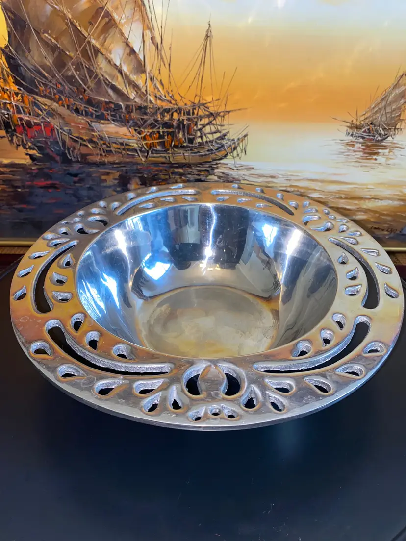 Features beautifully detailed pattern across rim. Measurements: 12.25” Diameter x 3” Deep Please review all photos as they complete the description. …………………………………………………………………Thank you for visiting BONNET VINTAGE! Please check out my other listings for more great finds!