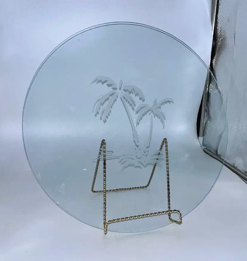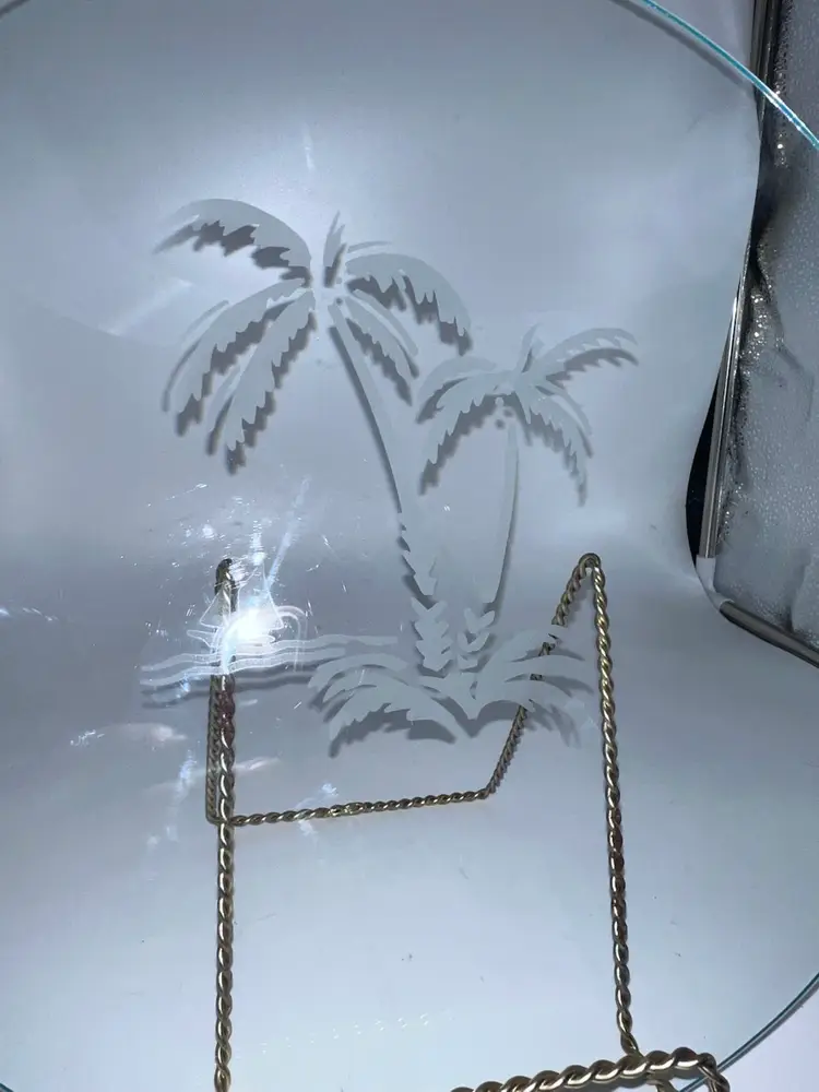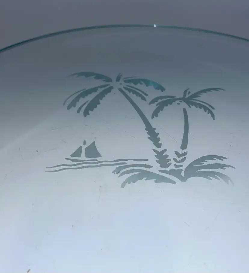 15” etched glass platter. Sailboat and palm trees. No chips or cracks.