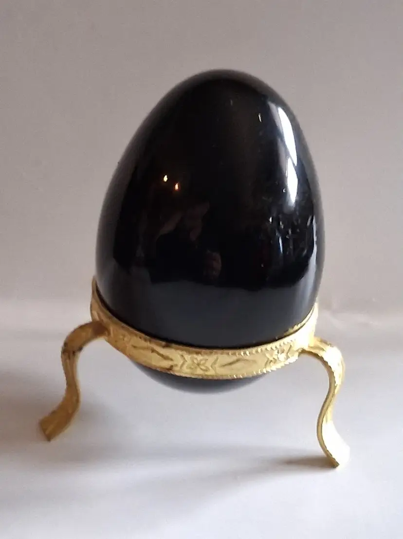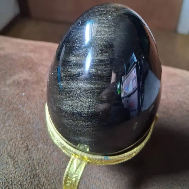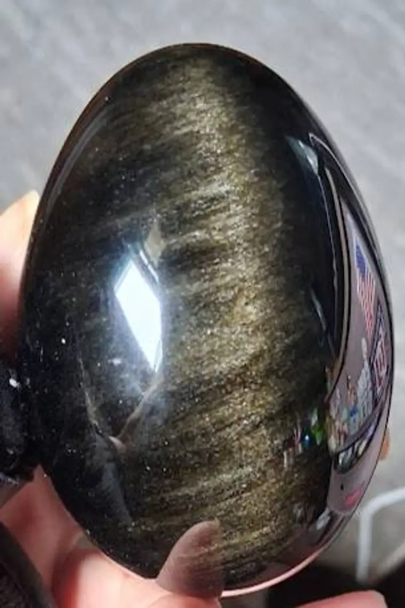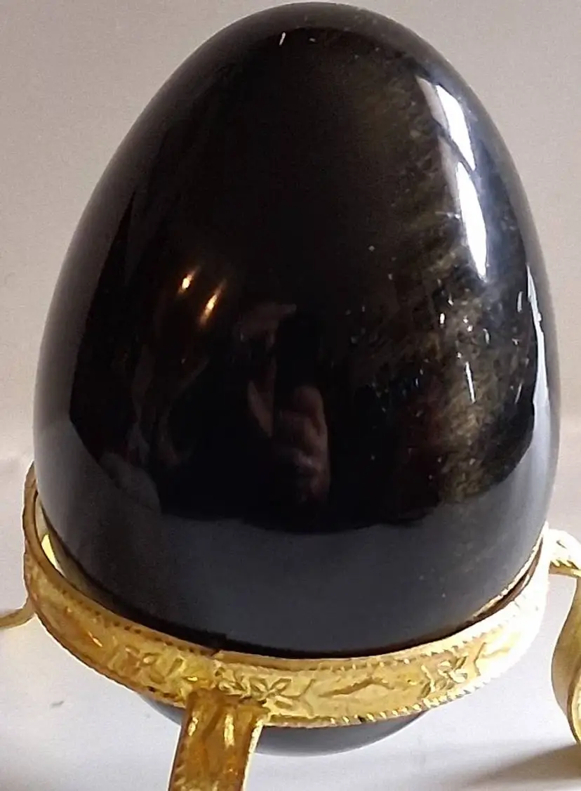 3.0" tall / 3.5" tall on stand, 2.25" dia. Can be used as a paperweight. Obsidian is a naturally occurring volcanic glass formed in swiftly cooling lava that has a high silica content. It is not considered a true mineral, as it does not have an entirely consistent chemical content and it does not form crystals.