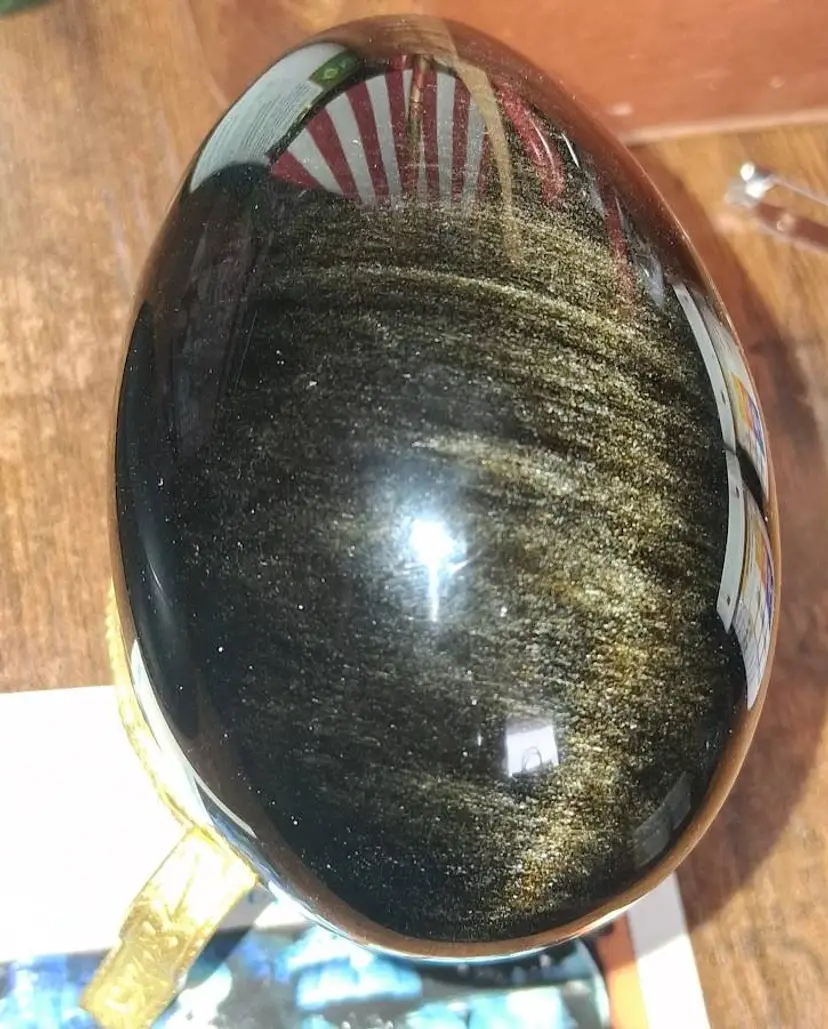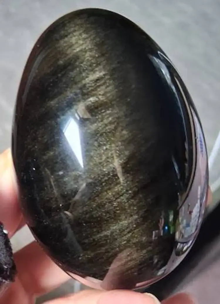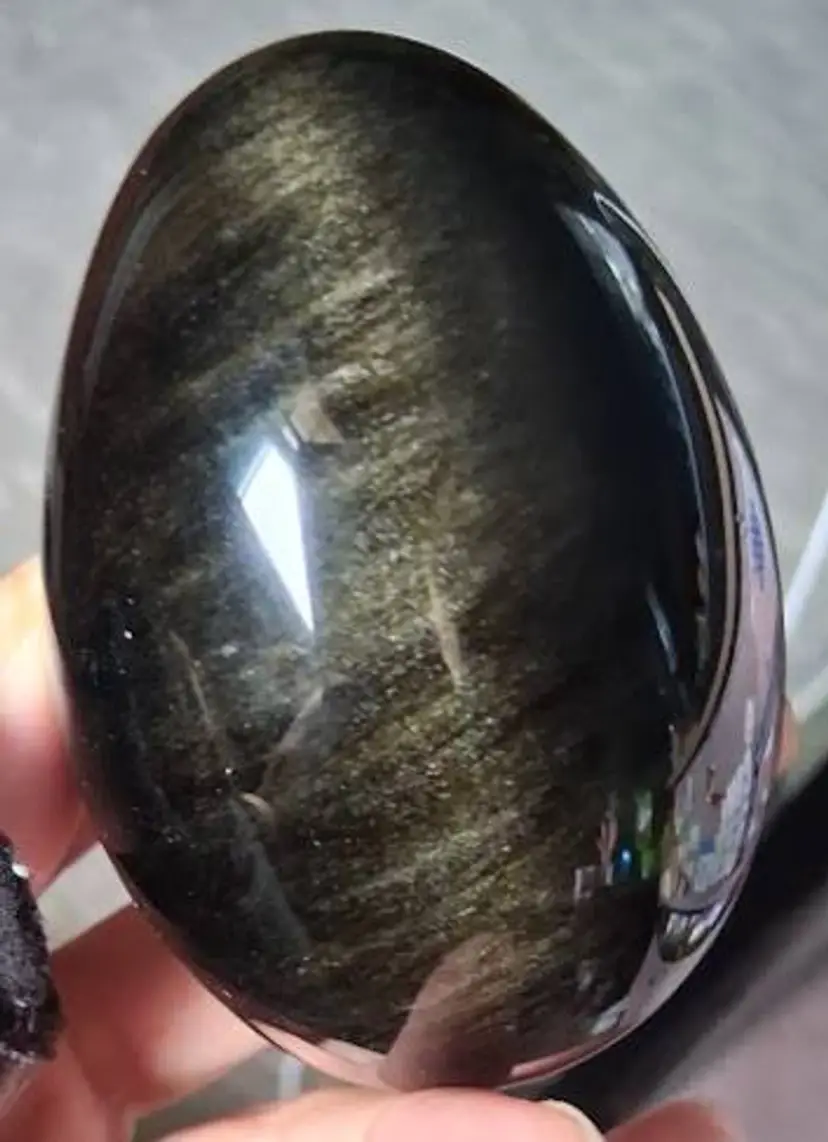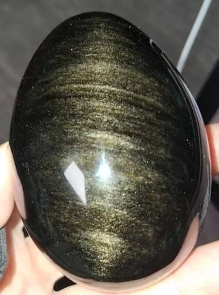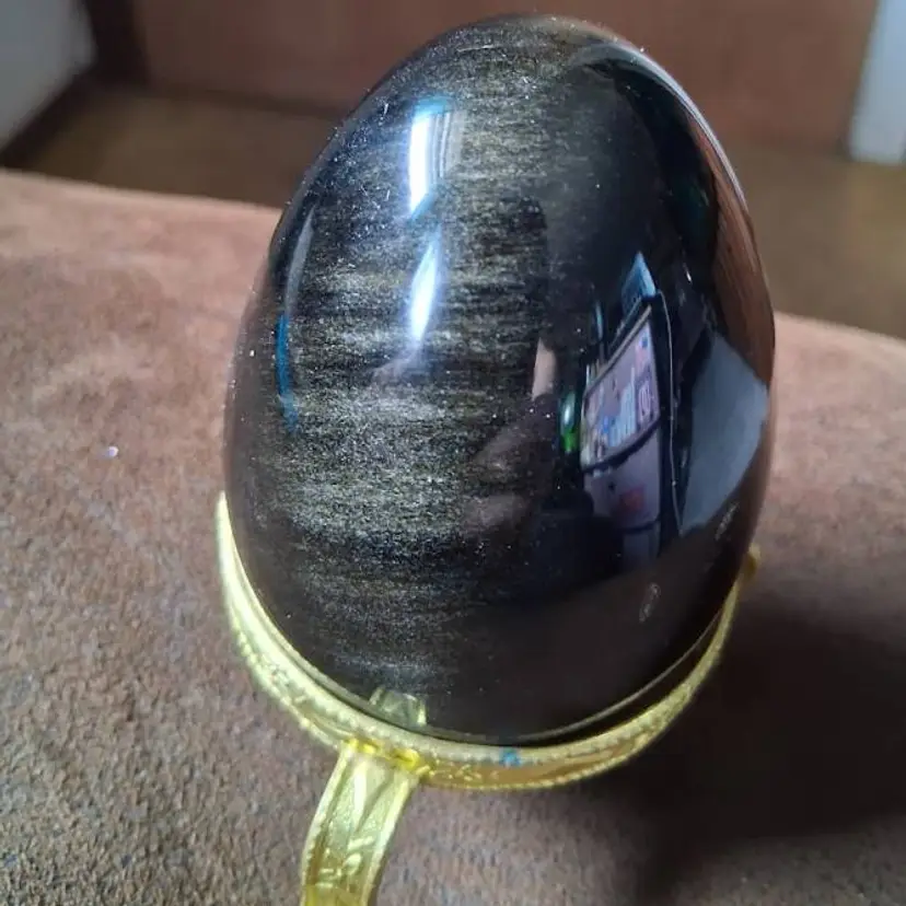 3.0" tall / 3.5" tall on stand, 2.25" dia. Can be used as a paperweight. Obsidian is a naturally occurring volcanic glass formed in swiftly cooling lava that has a high silica content. It is not considered a true mineral, as it does not have an entirely consistent chemical content and it does not form crystals.