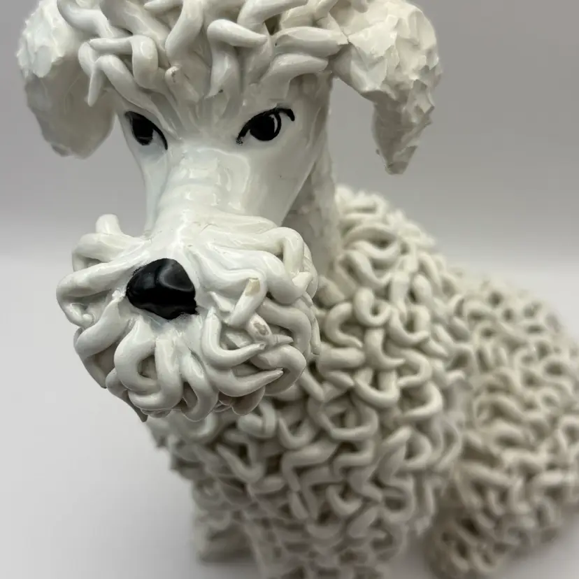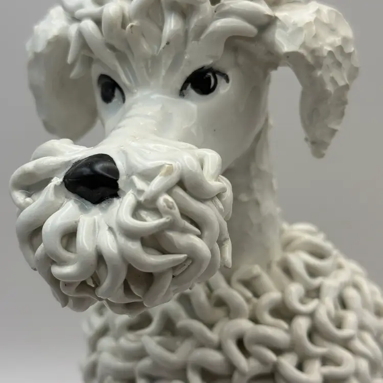 Beautiful example of the Italian spaghetti poodle . This vintage dog is a favorite among poodle lovers and collectors. The condition is overall good, but does have some chips on the noodles as most of these do. 9” tall 8” at widest