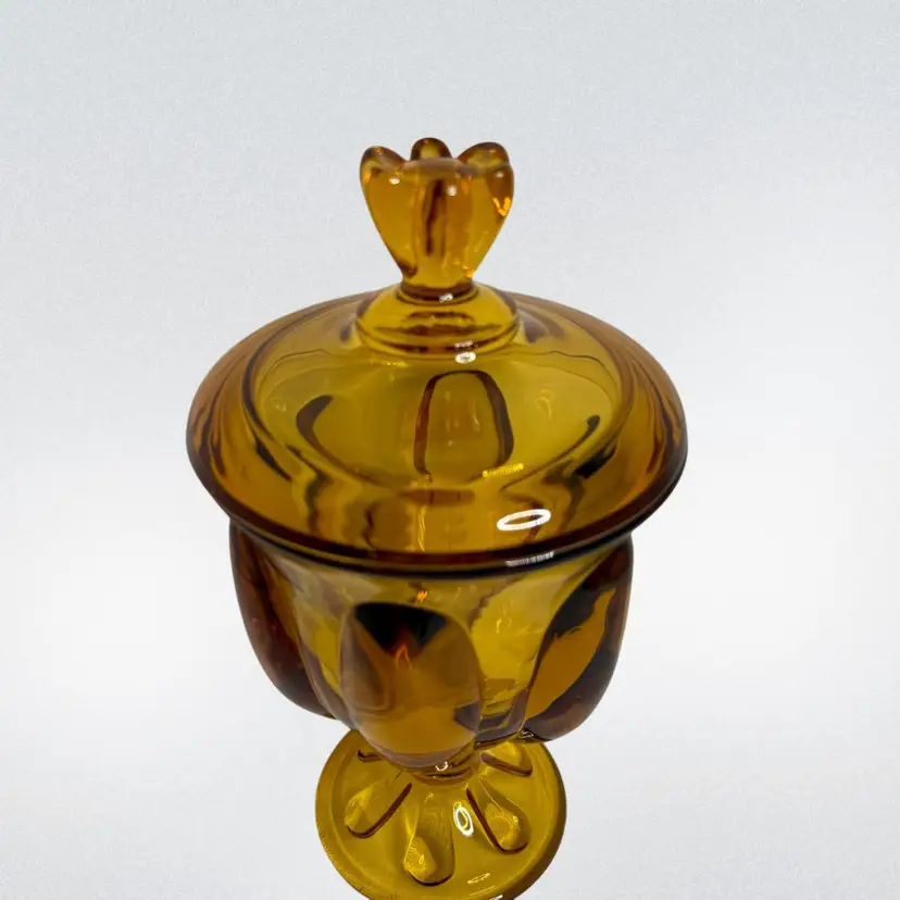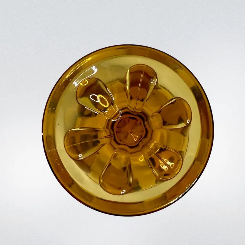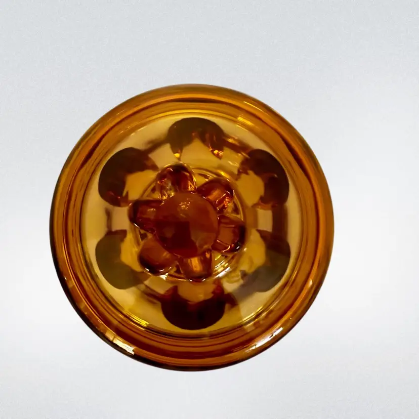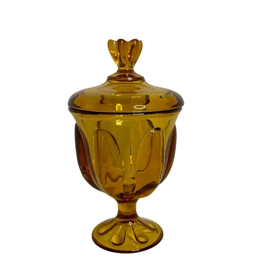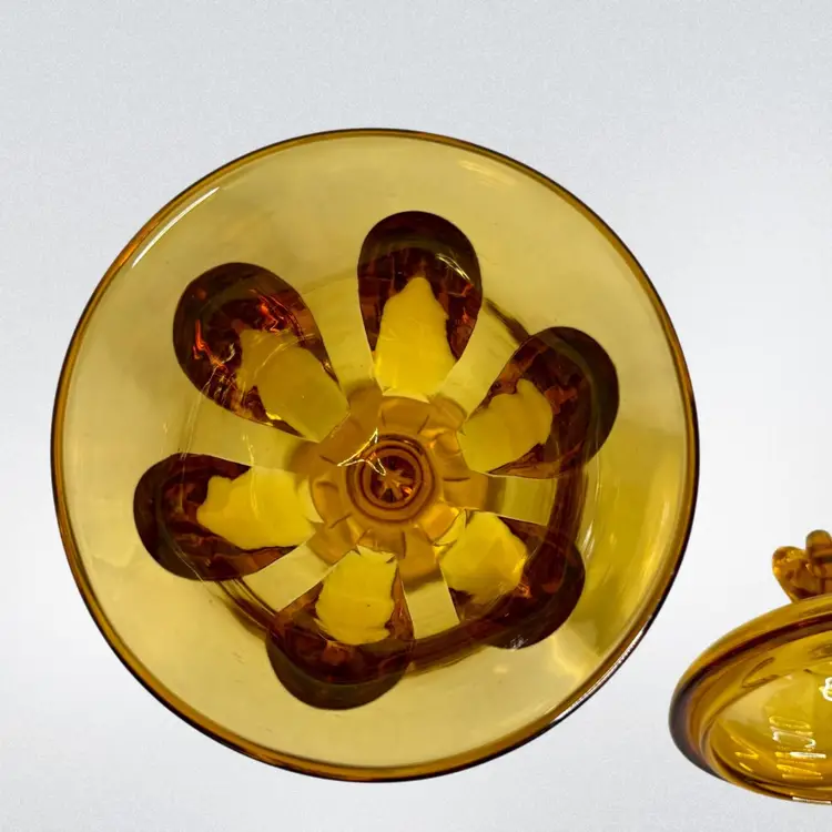 Vtg Viking Amber art Glass Candy dish Epic 6-Petal with lid.