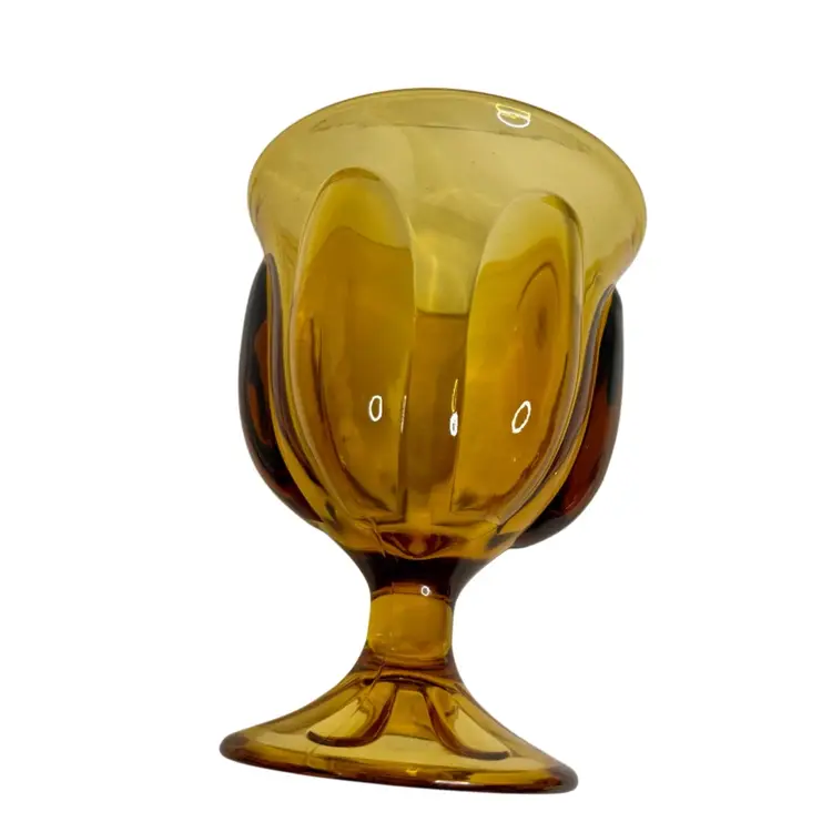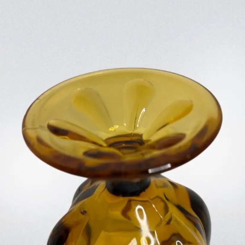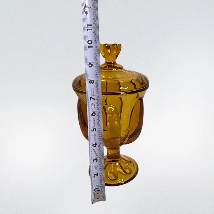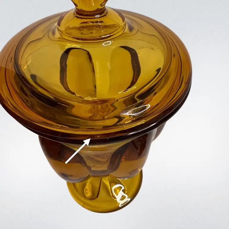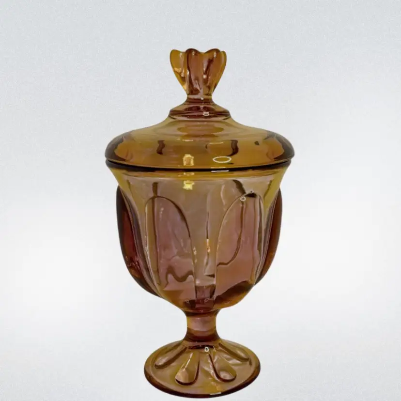Vtg Viking Amber art Glass Candy dish Epic 6-Petal with lid.