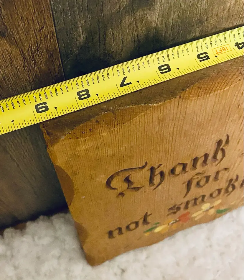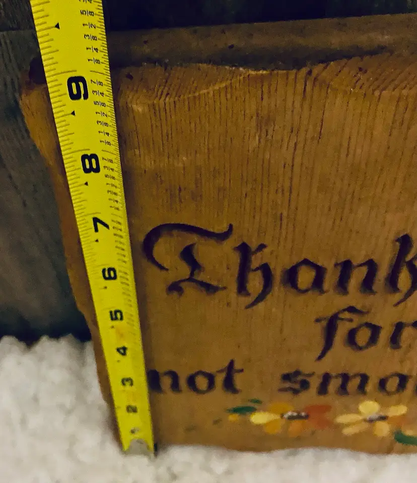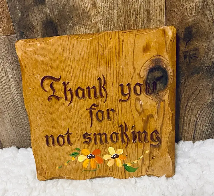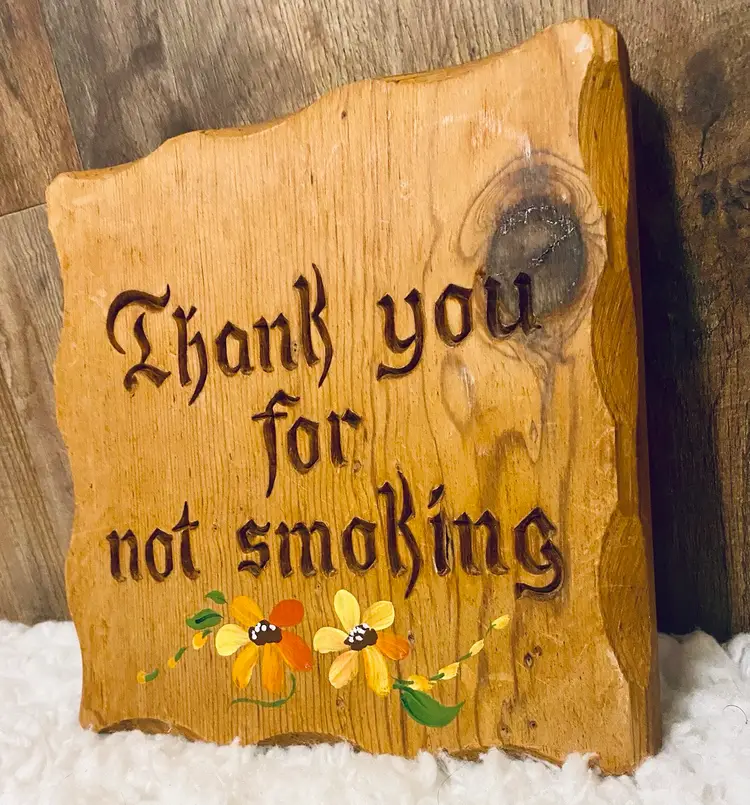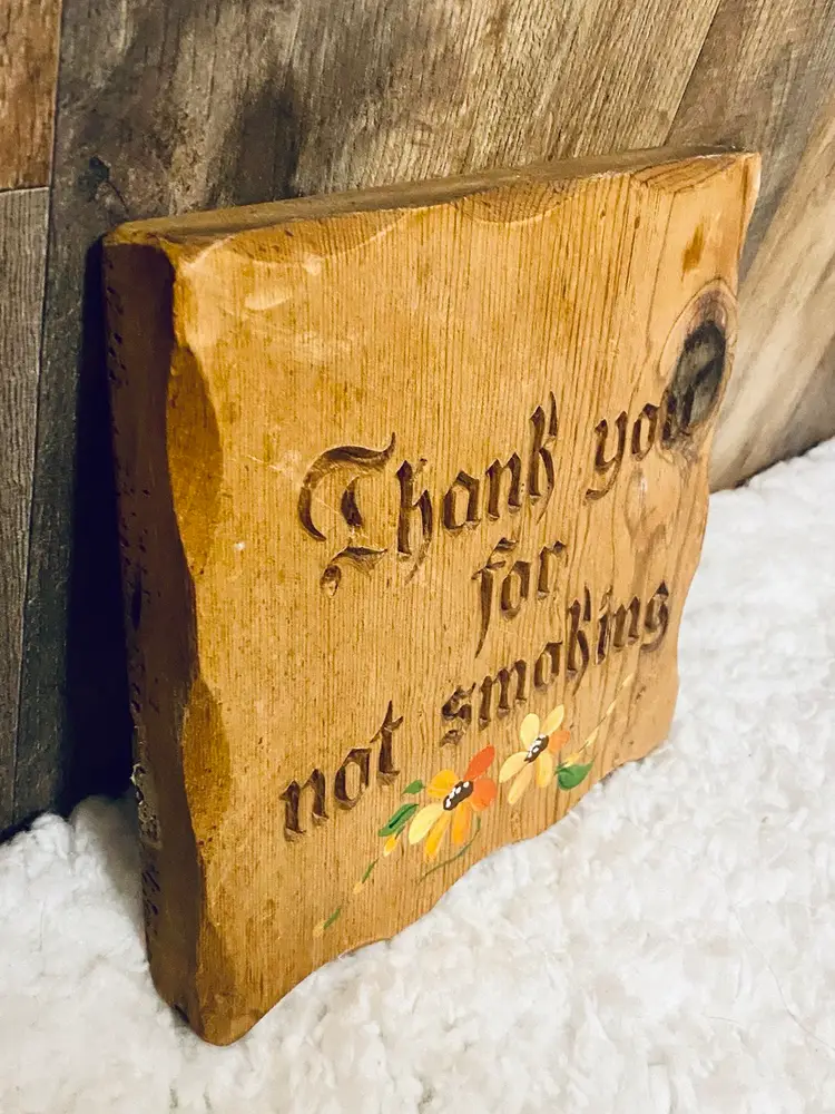 This is a vintage Lasercraft wood laser engraved "Thank you for not smoking" sign with hand-painted flowers
