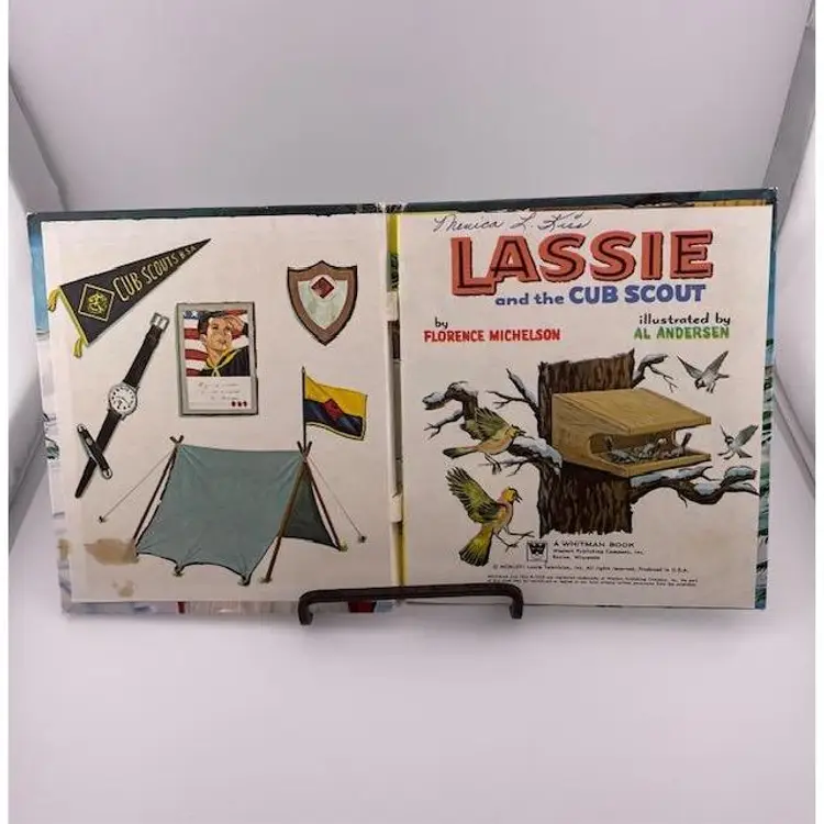 These Lassie Books were published in 1966. The illustrations are bright and colorful. They are Tell A Tale Books published in Racine, Wisconsin by Whitman Publishing Company. They are each 27 pages. Both books are in good condition with intact bindings. There are no torn pages. The Lassie and the Cub Scout Book has a name written on the front page. They each measure 5.5" x 6 1/4".