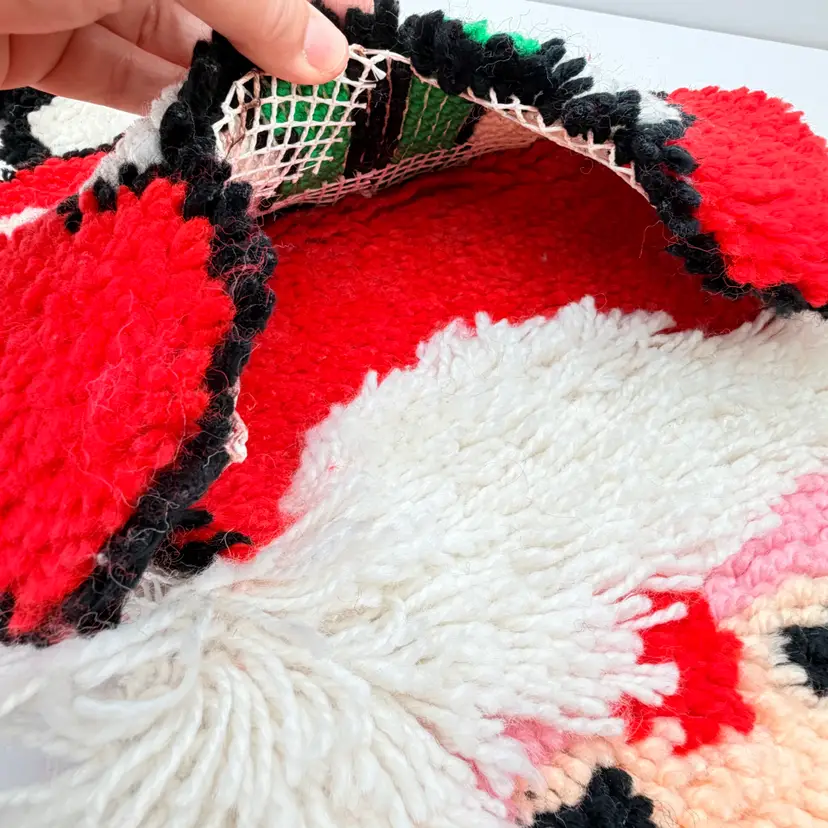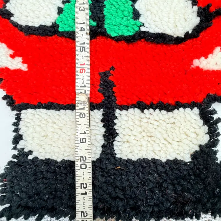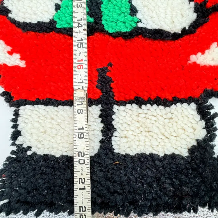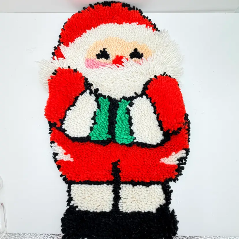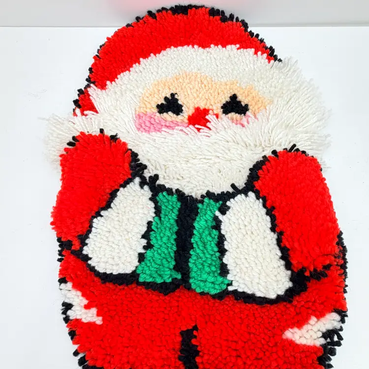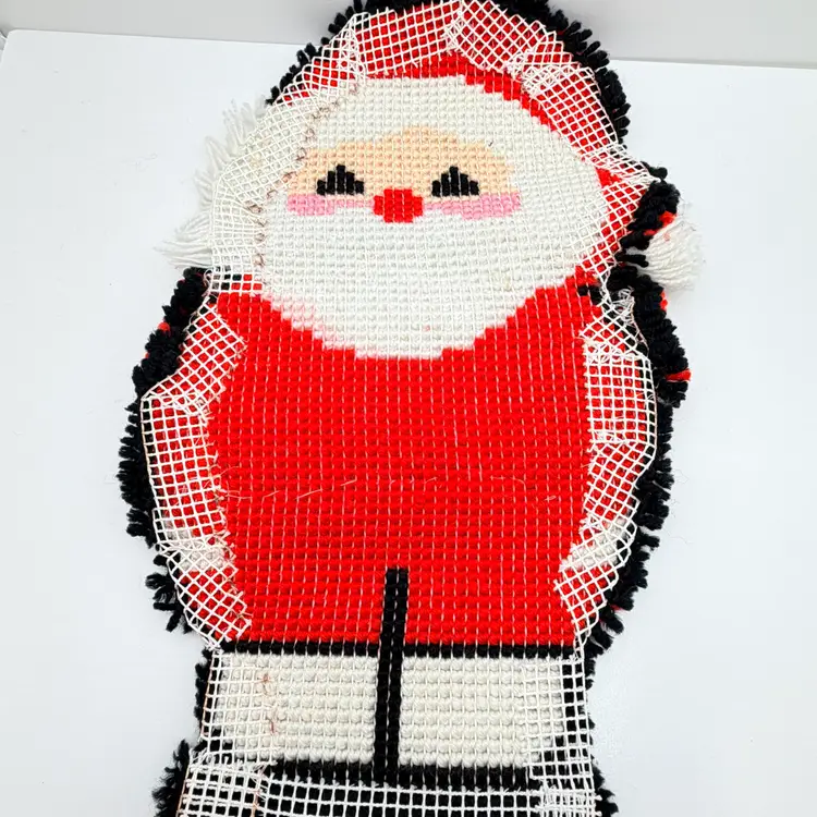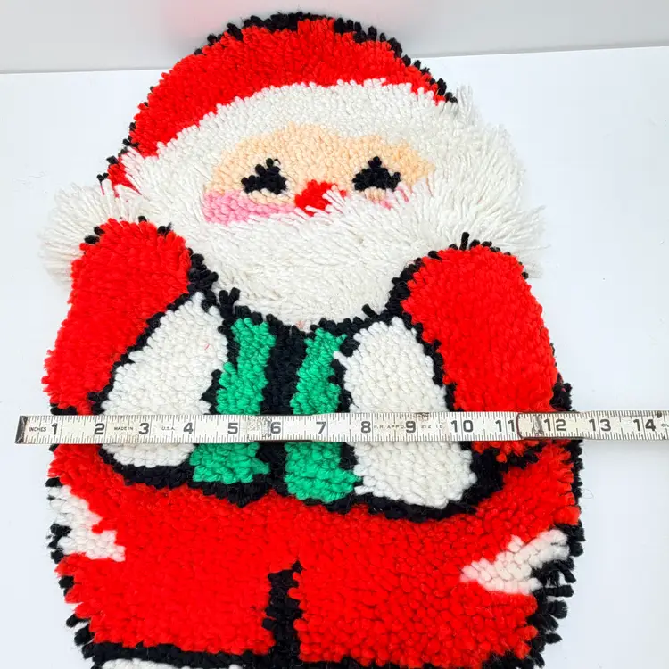 Pictures cannot do justice to how cool this Santa is. We believe he may have been a vintage card holder, but cannot confirm that. What we do know is it is a handmade vintage latch hook of Santa. He is very heavy and large at over 22 inches long and 13 inches wide. The condition is very good with no missing threads and he is ready to be hung again for the holidays.