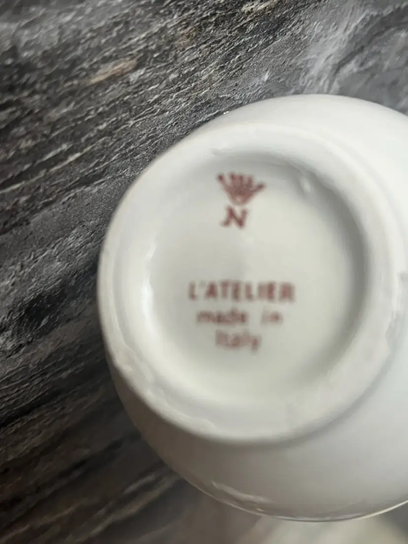 A mid century L'atelier ceramic vase. Marked on the bottom. Approximately 3 1/2 inches tall and 2 inches wide. Excellent condition.