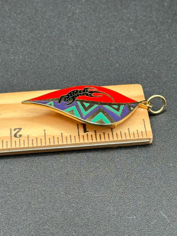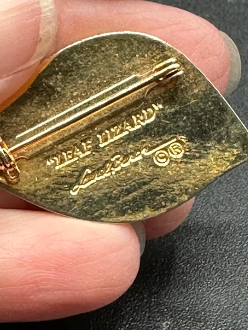 Vintage Laurel Burch Leaf Lizard Brooch Gold Tone & Enamel Pin