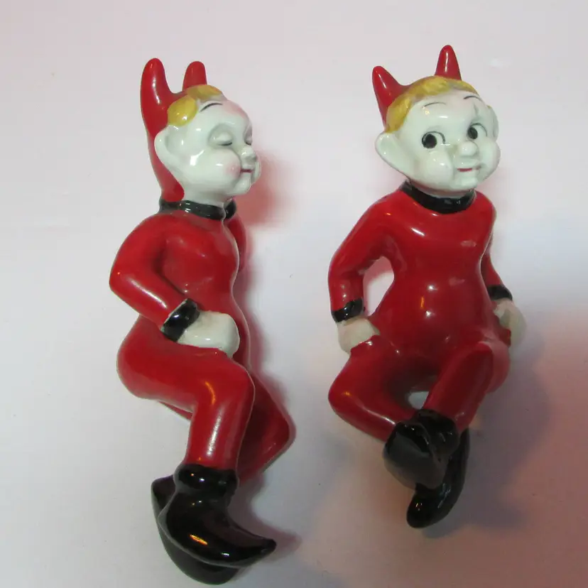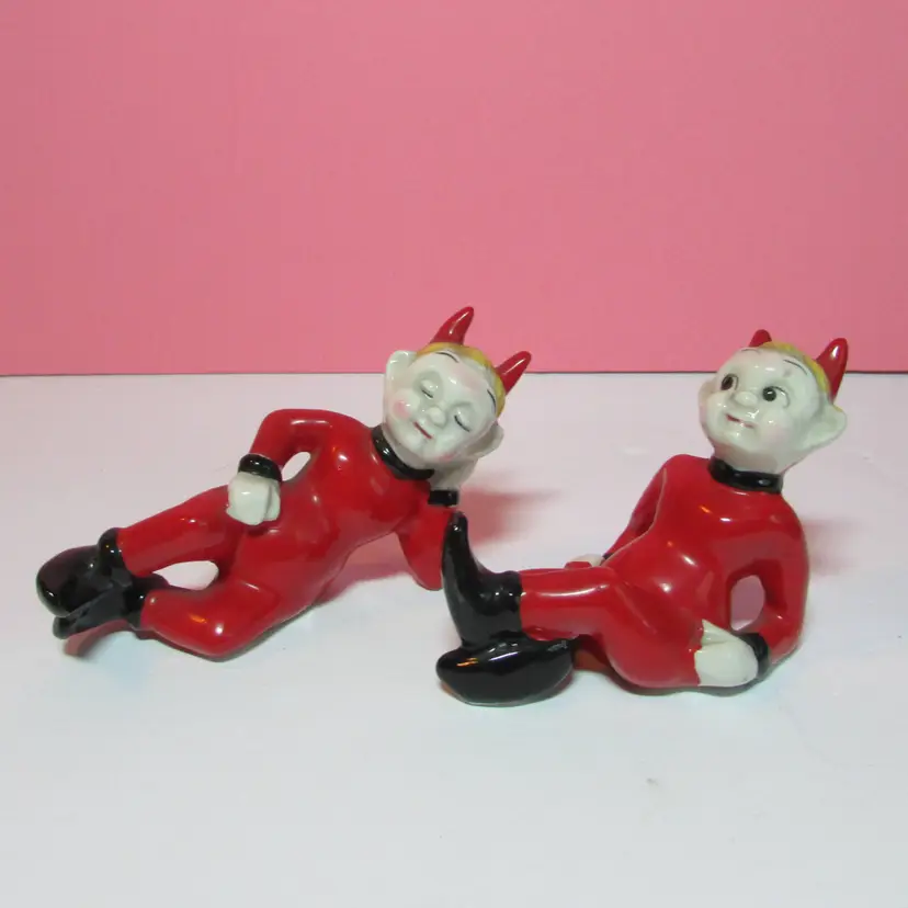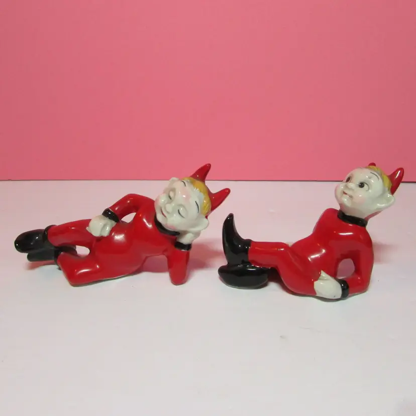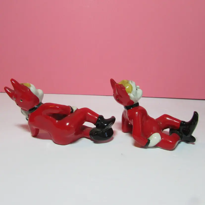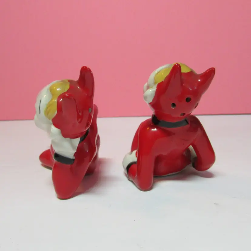 This adorable set has some wear, the one had a chip over the eye which was glazed over (now he has a scar). Still a great set to display, the taller one is about 3" x 4". This is shipped from a smoke free home. Thanks for looking!