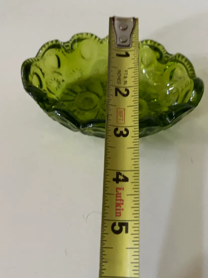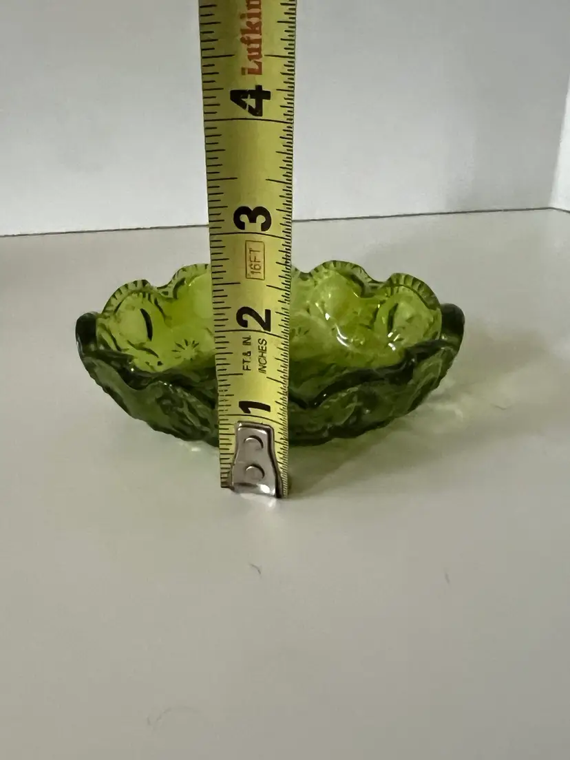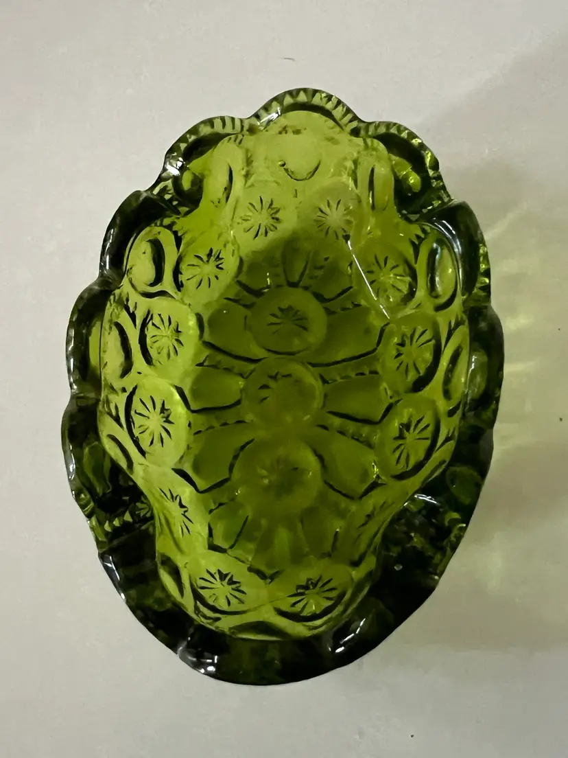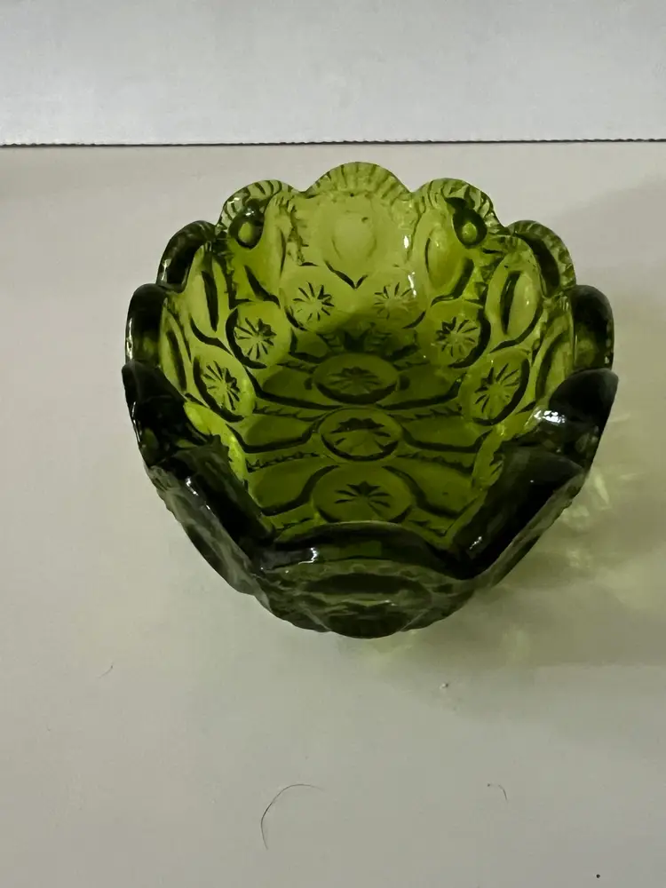 Beautiful avocado green LE Smith moon and stars ashtray trinket dish. There are no chips or cracks it’s in very good to excellent condition. Please see accompanying photos for condition s d measurements.