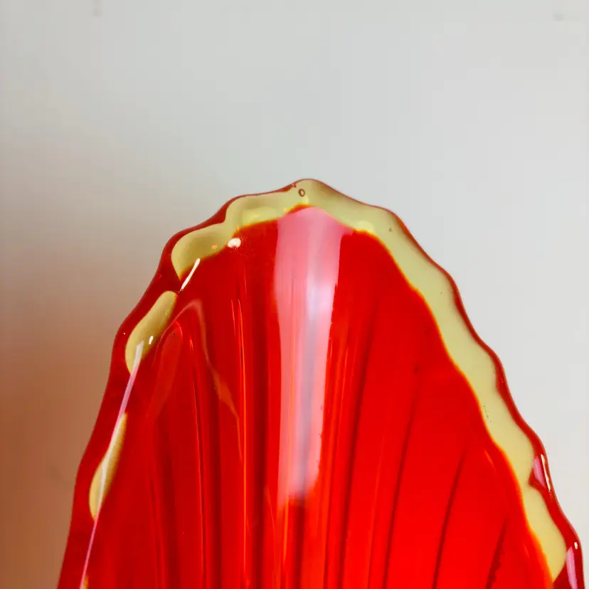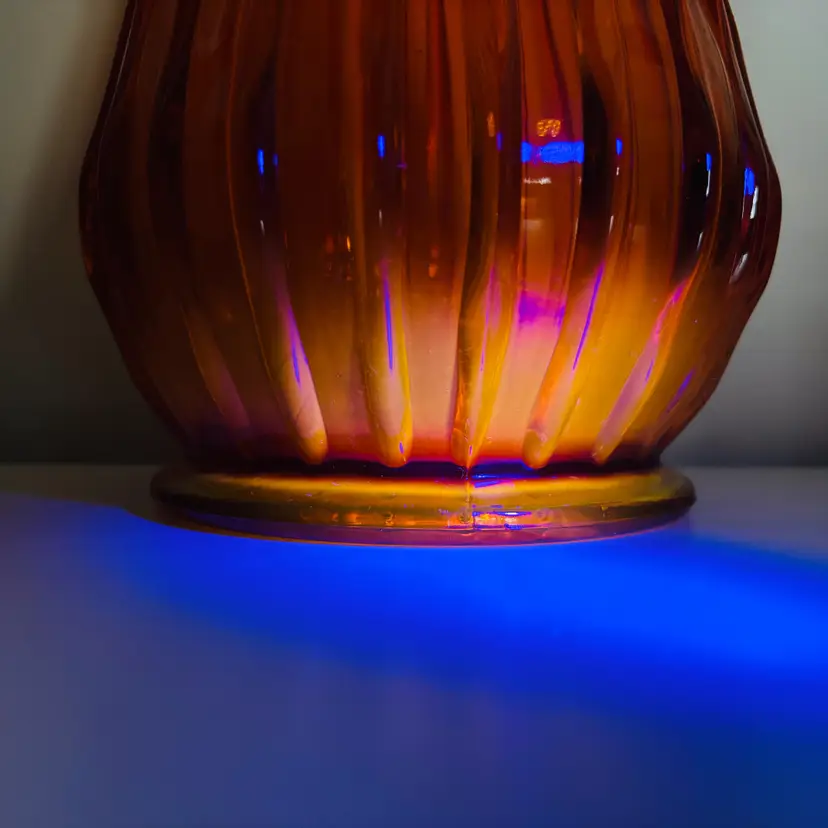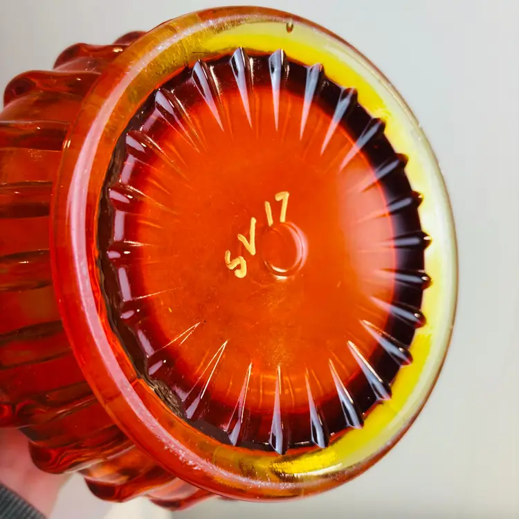 Features: the color appears to be red-orange but looks more orange than all the other glass I have currently this is why I listed it as Persimmon; the pattern is broken column; the maker is LE Smith Glass.