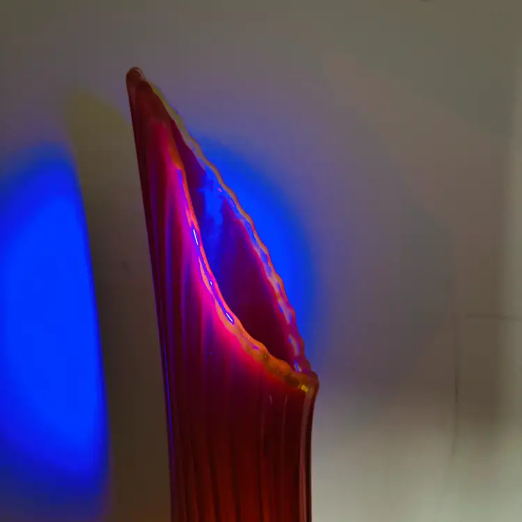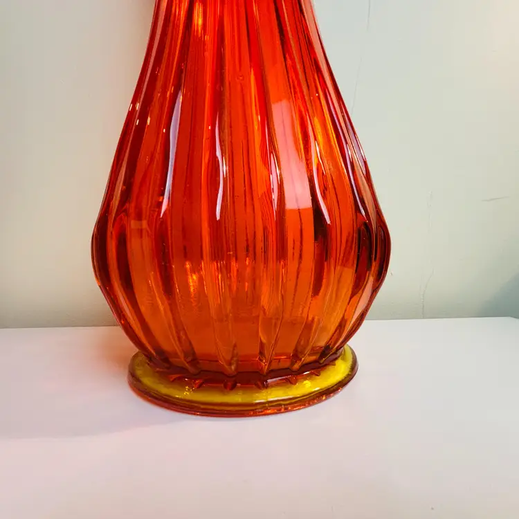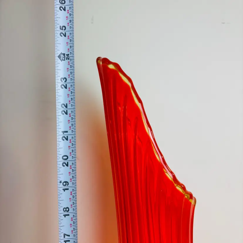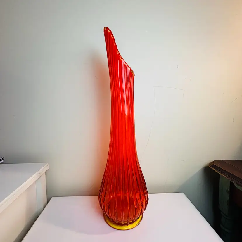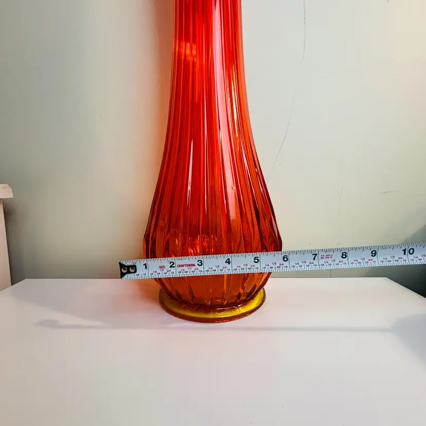 For sale is a Vintage LE Smith Glass Swung Vase Broken Column Stretch 24 in MCM Persimmon