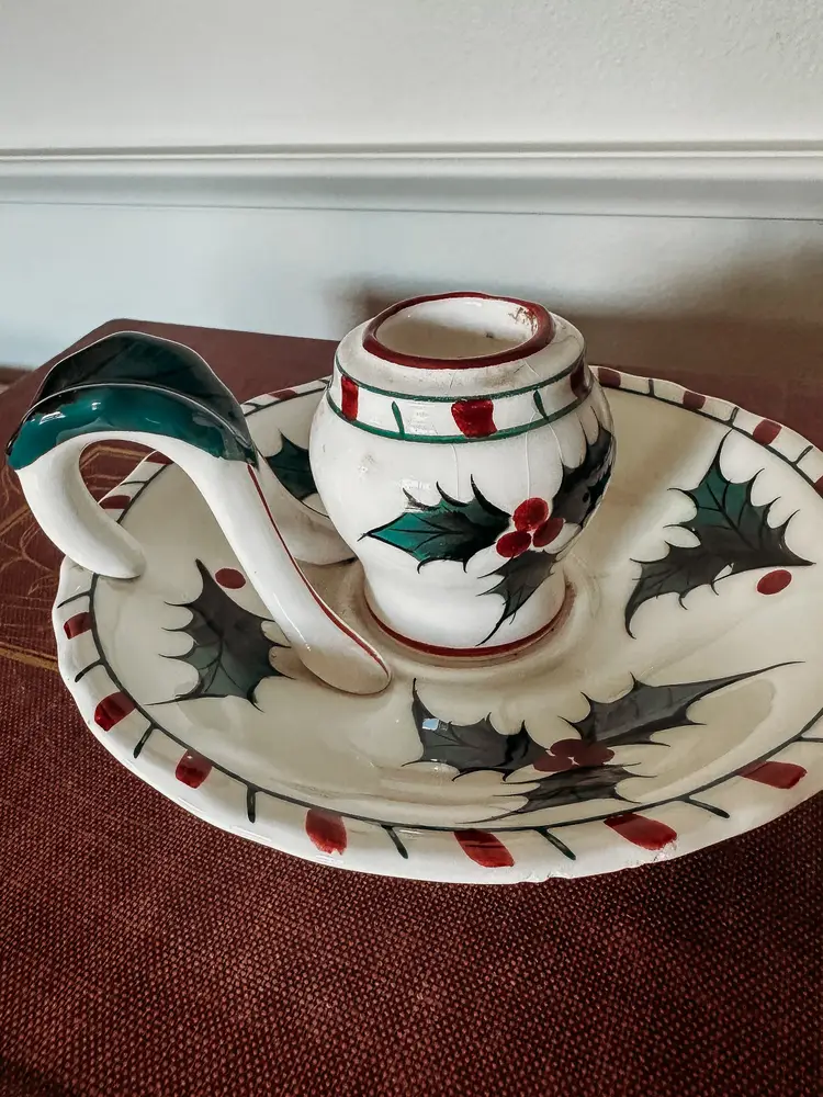 Beautiful crazing showing the age on this vintage beauty. Some chips as seen in the images but still a lovely piece that would add charm to any holiday home! 6x5.75x2.5" tall