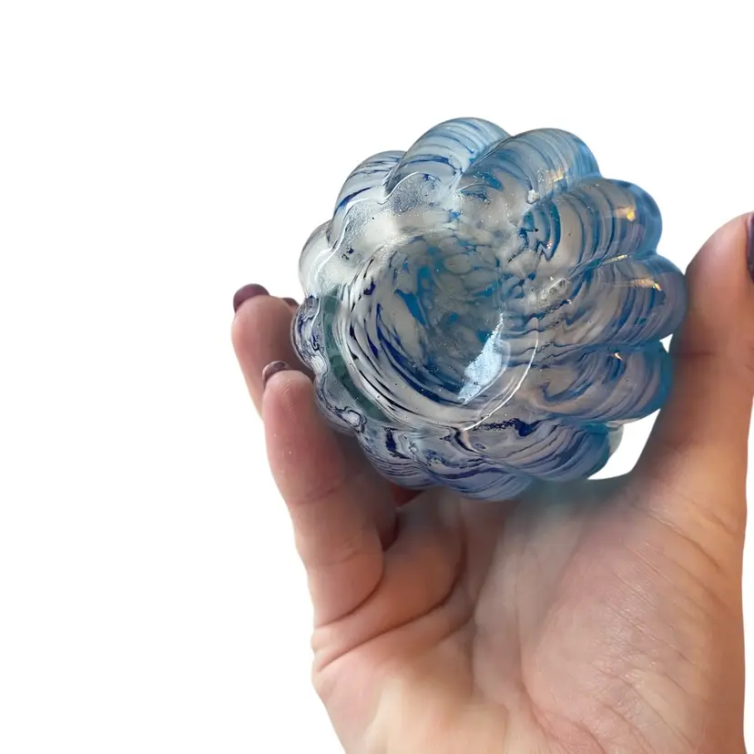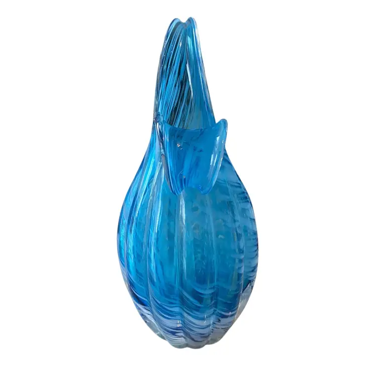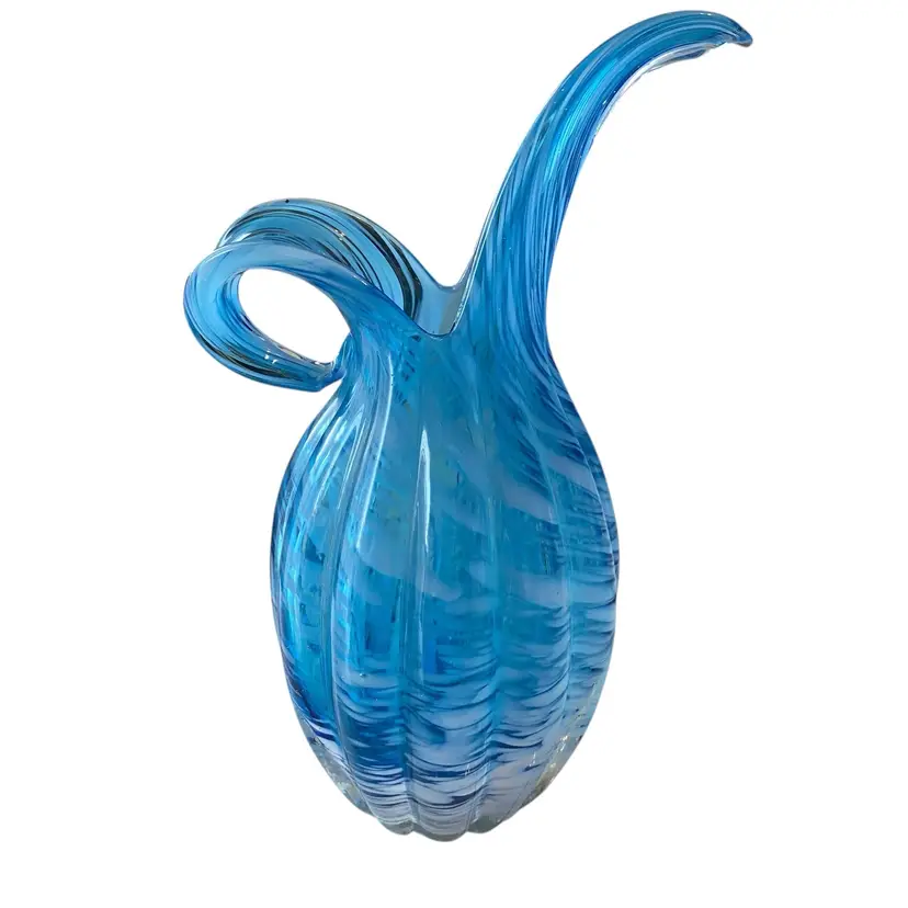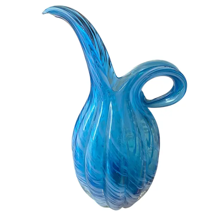 Vintage Lefton Blue Swirl Glass Hand Blown Pitcher or Vase 6.5tall 3in wide