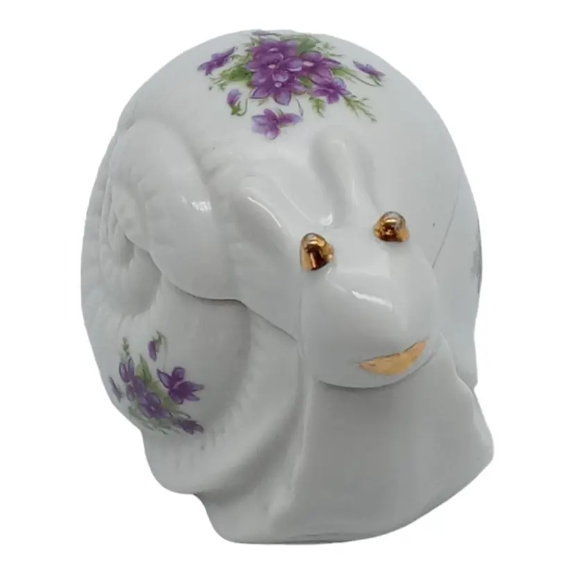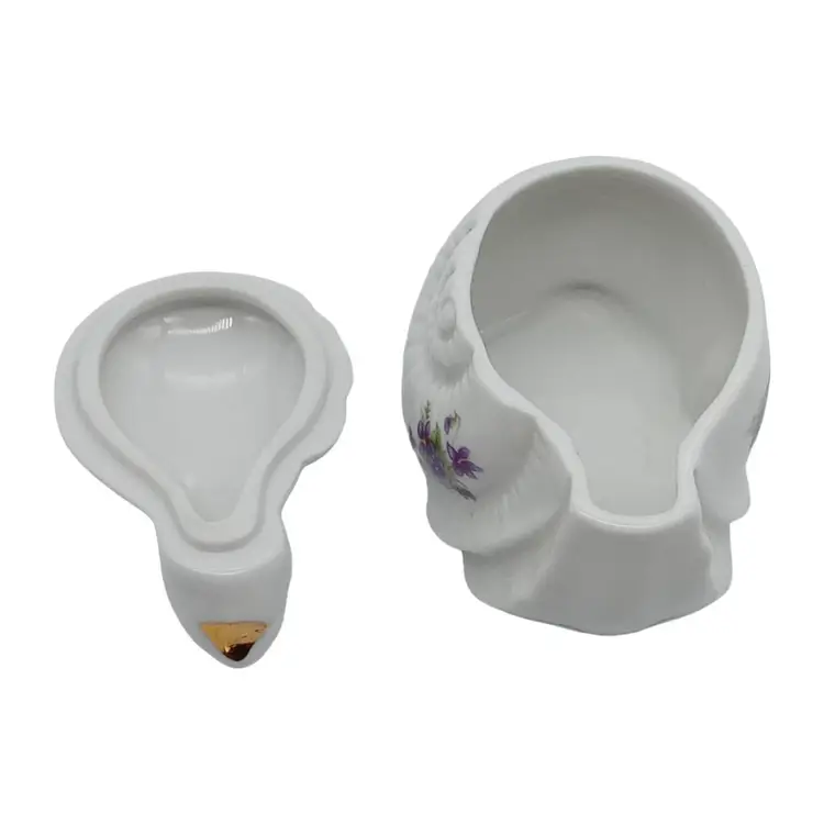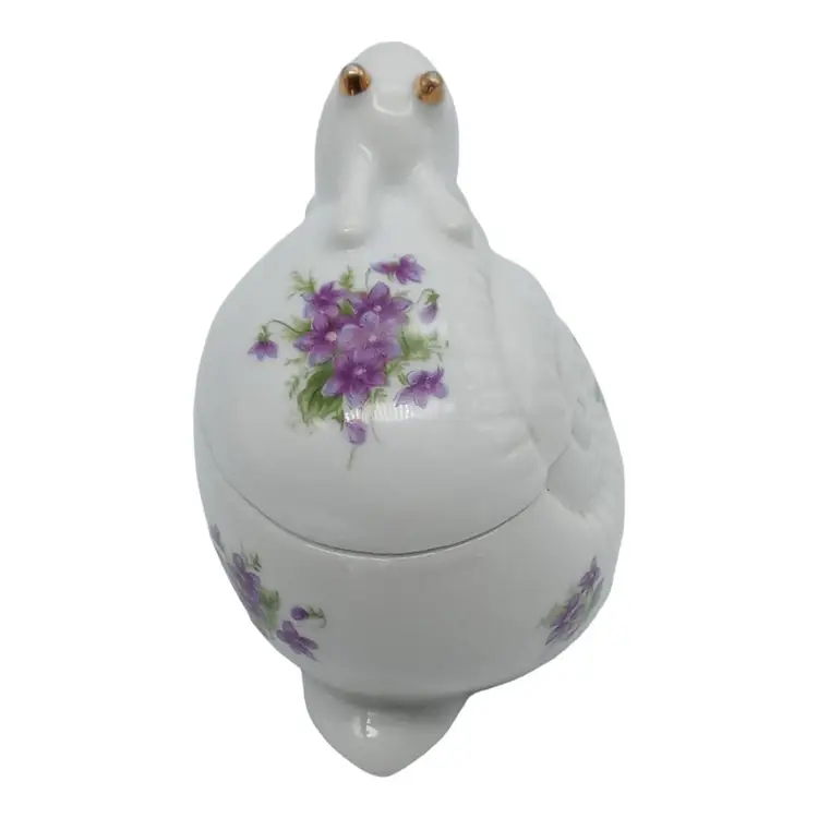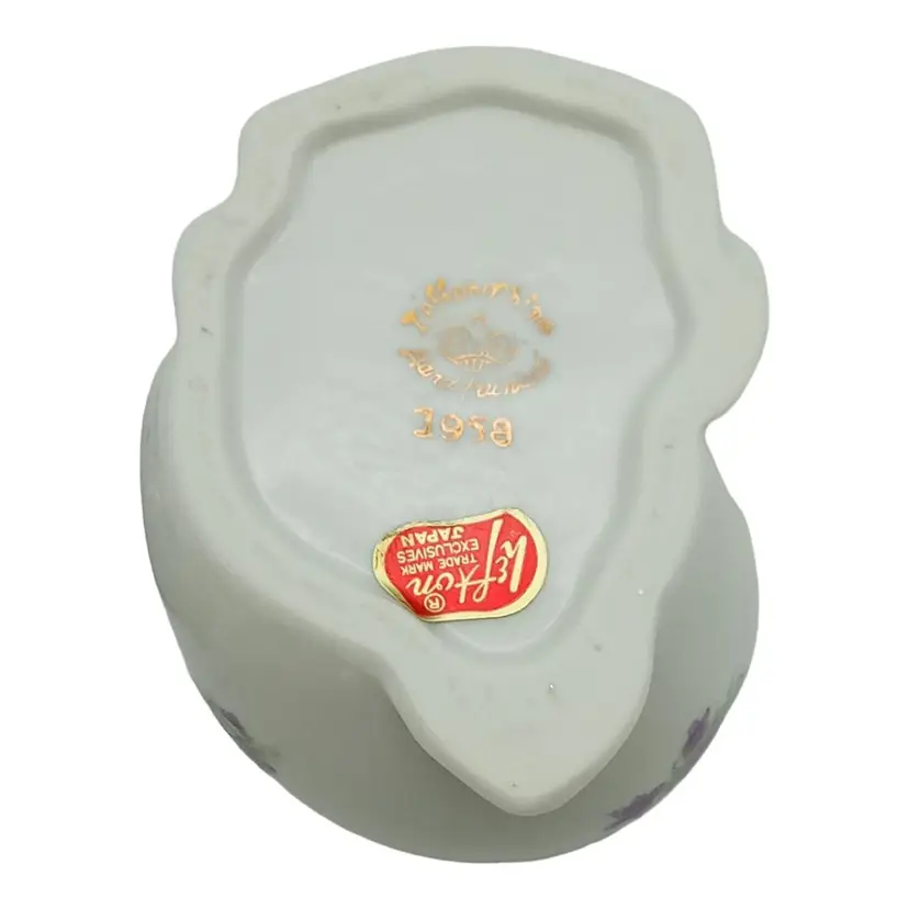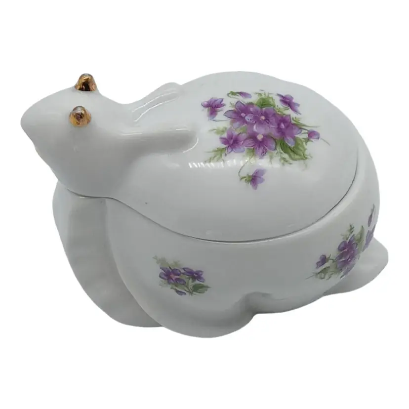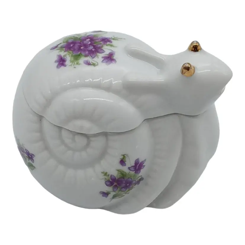 Discover a delightful piece of vintage charm with this exquisite Lefton China 1958 Hand Painted Snail Trinket Box adorned with intricate purple flowers. Crafted with care and hand-painted to perfection, this trinket box is a testament to timeless craftsmanship and artistry.