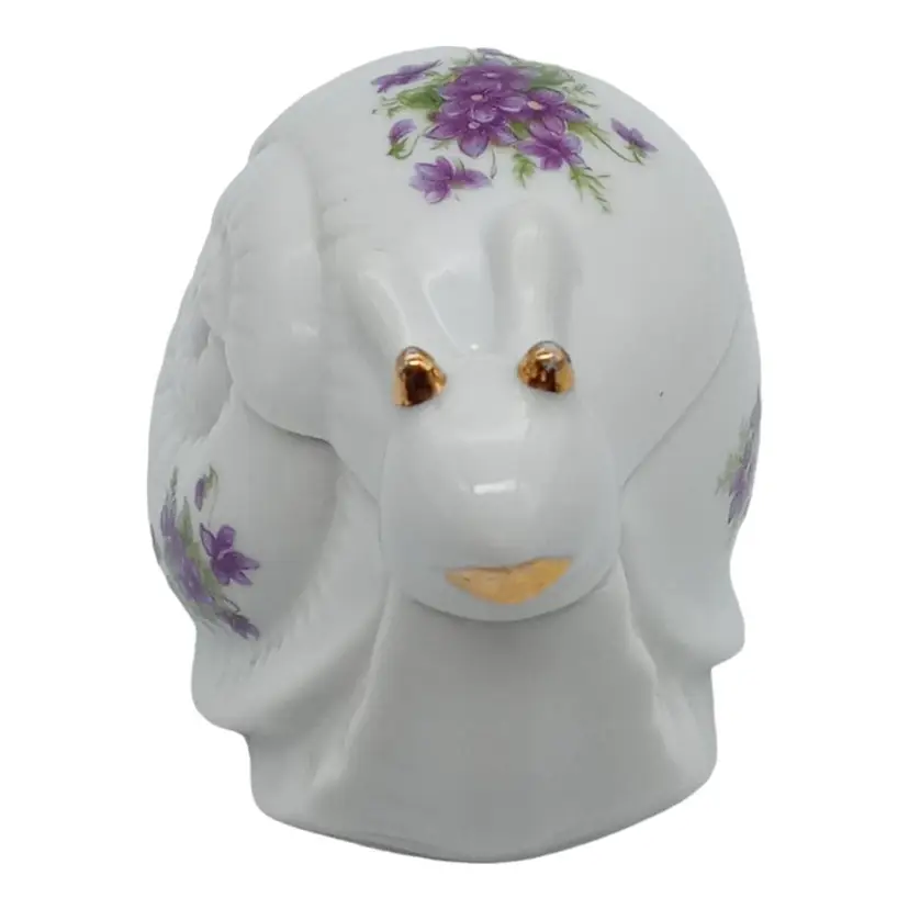Vintage Lefton China 1958 Hand Painted Snail with Purple Flowers Trinket Box
