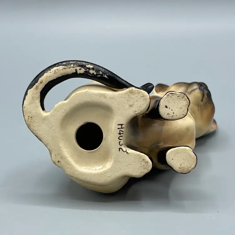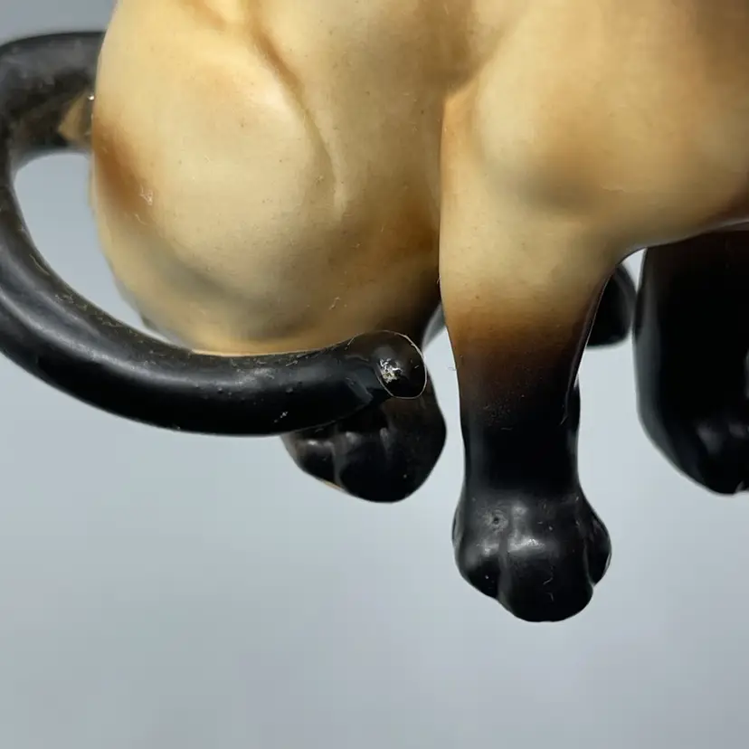 This lovely, realistic figurine has no chips or cracks but it does have a small glaze rub on the tip of the tail. It stands about 3-5/8 inches tall.