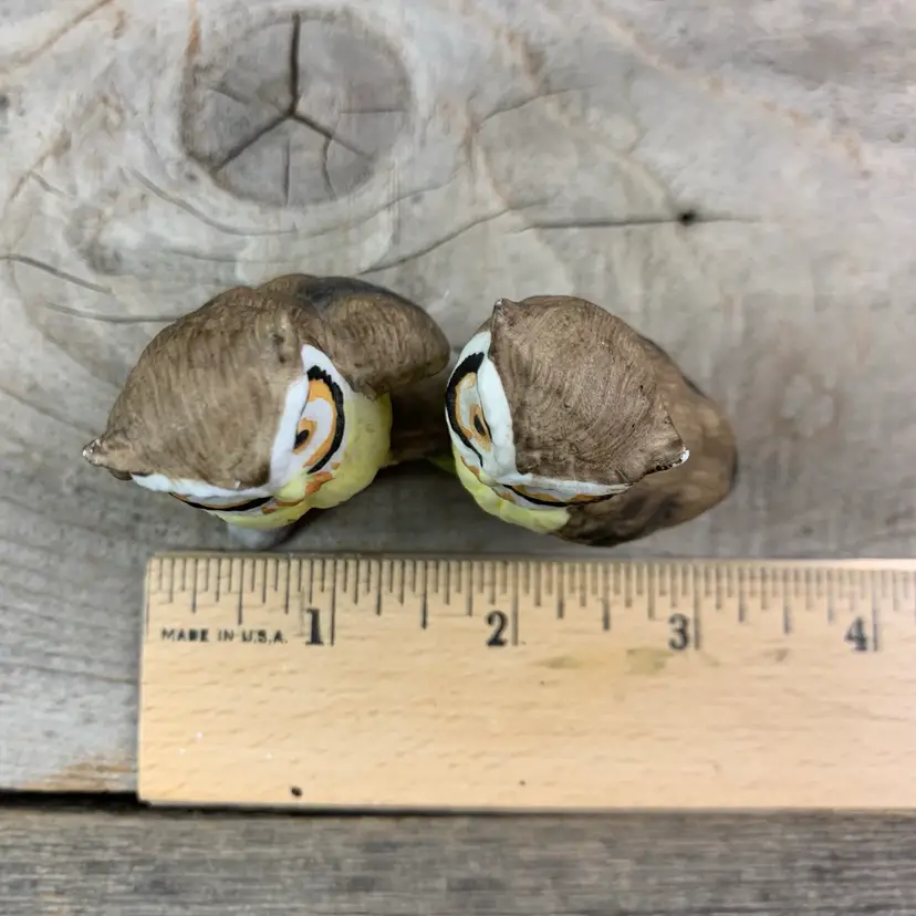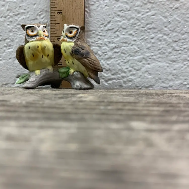 Vintage Lefton Owls Pair perched on a branch painted with no markings. Good condition with minor paint chips - one leaf and the tip of the left ear. Through research I identified the maker. Most items will be shipped out the next business day after payment, excluding the weekends and holidays. ALL ORDERS SHIP WITHIN 3 BUSINESS DAYS. All Measurements are Approximate HAND WASHING IS RECOMMENDED FOR ALL VINTAGE ITEMS. I will be diligent and accurately describe all of the listings. Also if applicable the photos will show any scratches, marks, cracks, chips, rust, and patina.