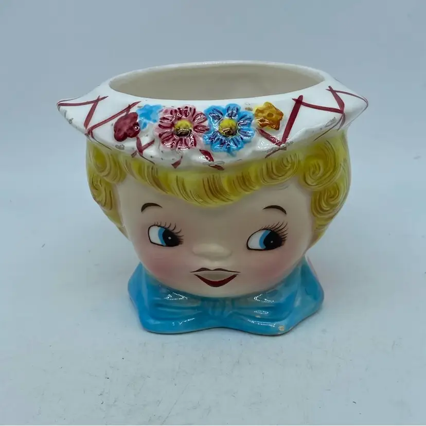 The Lefton company, founded by George Zoltan Lefton in 1940, specialized in importing and distributing fine porcelain and ceramic giftware, often manufactured in Japan. Their 'Miss Dainty' line, characterized by charming depictions of young girls and children, became particularly popular in the mid-20th century. These pieces were designed to be decorative and functional, often serving as planters, candy dishes, or other household items.