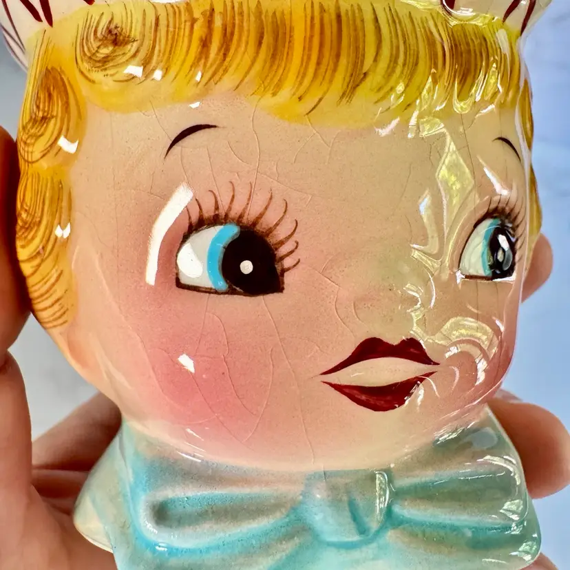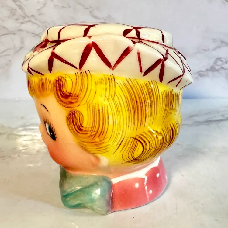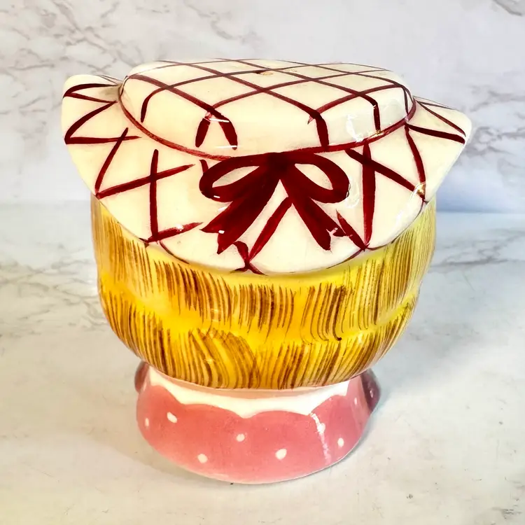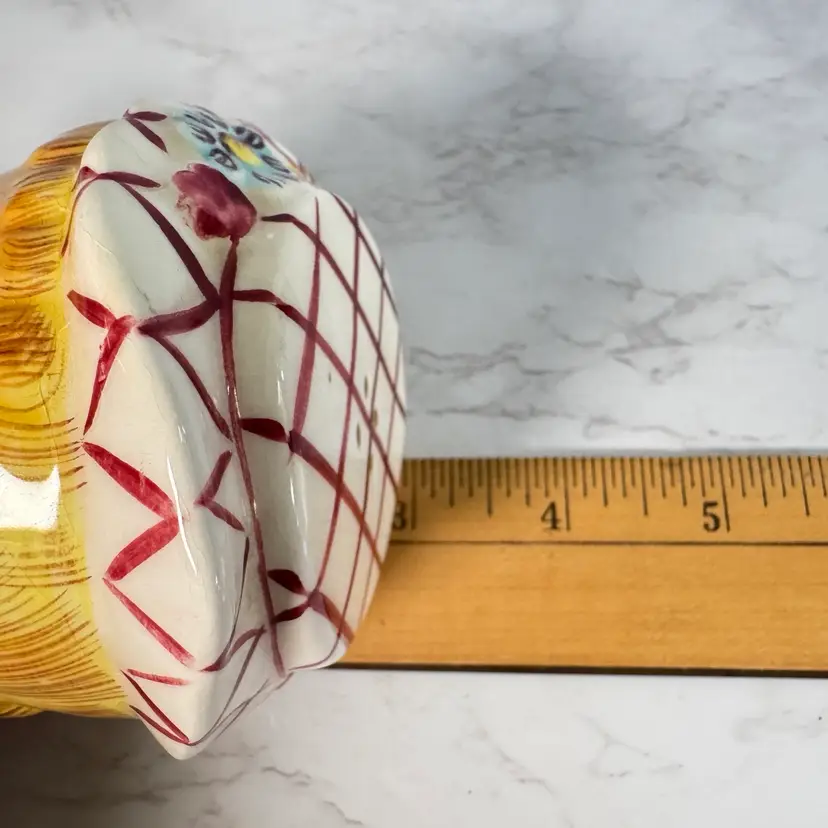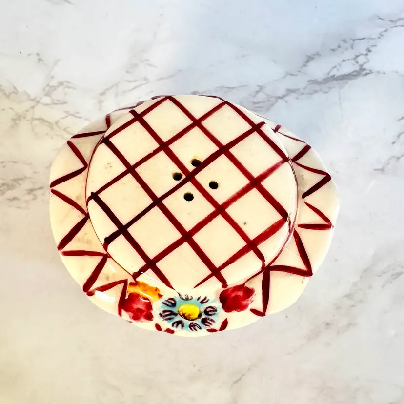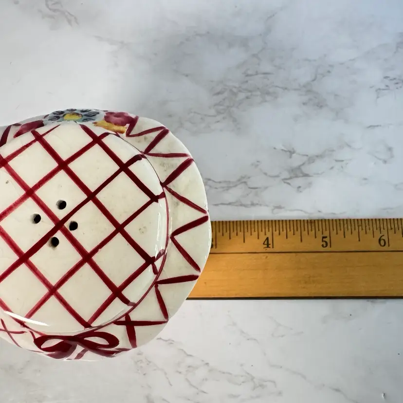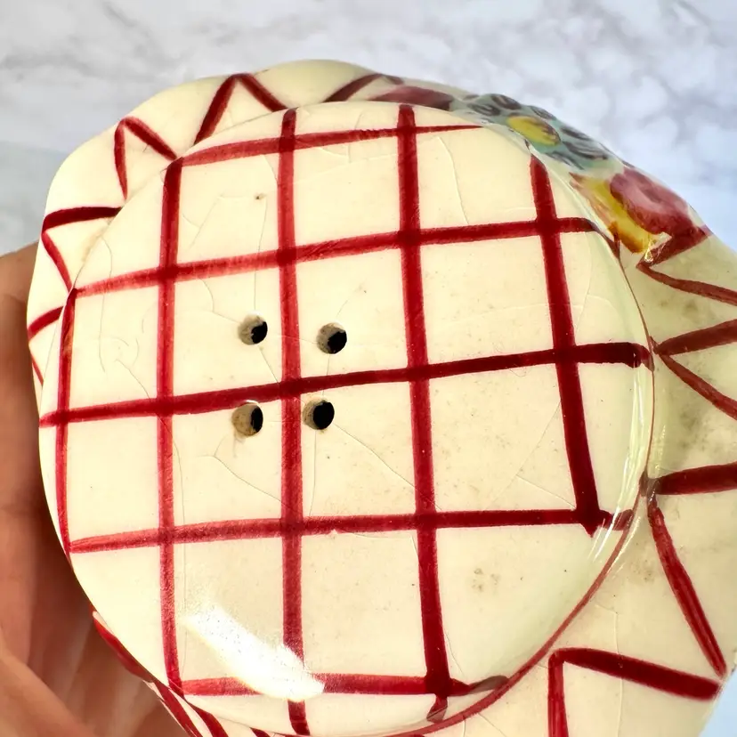 Good vintage condition with crazing all over. 4 shaker holes on top. 3”dia x3 ”h